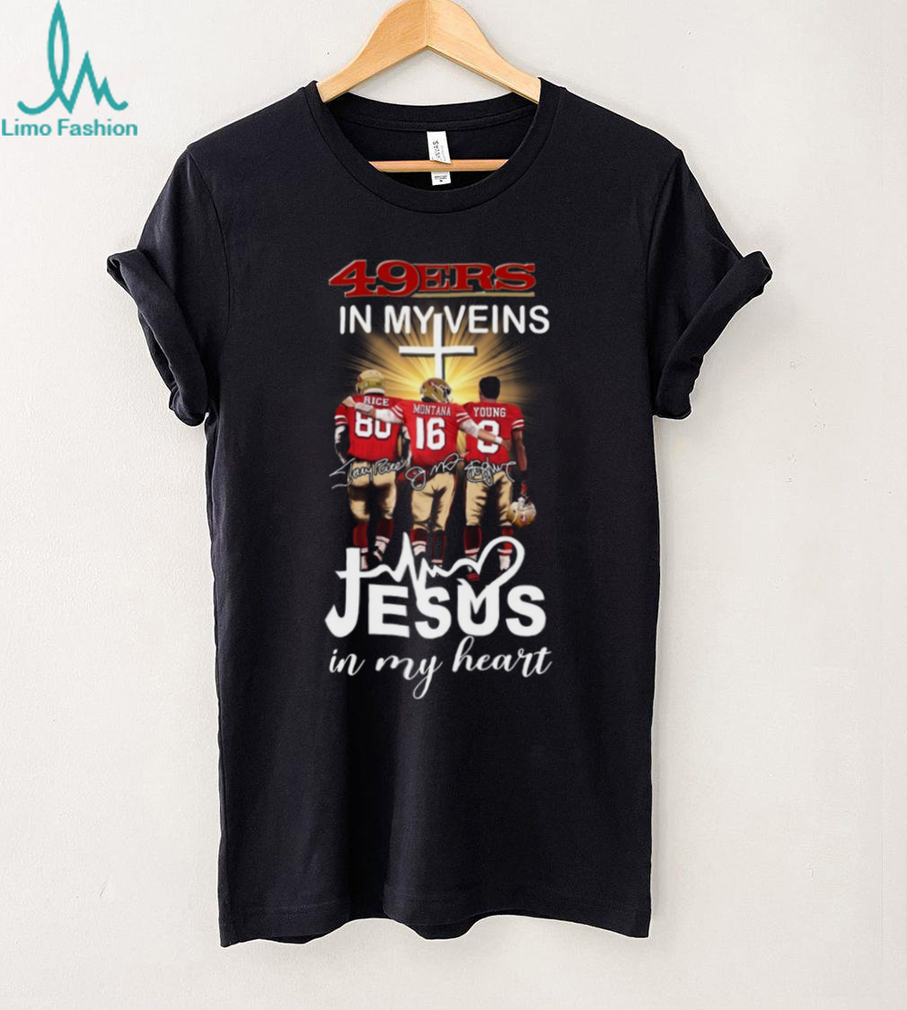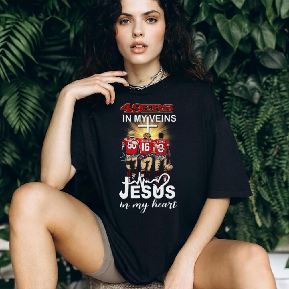 Who Rocks This Best with 49ers In My Veins, Jesus In My Heart T Shirt