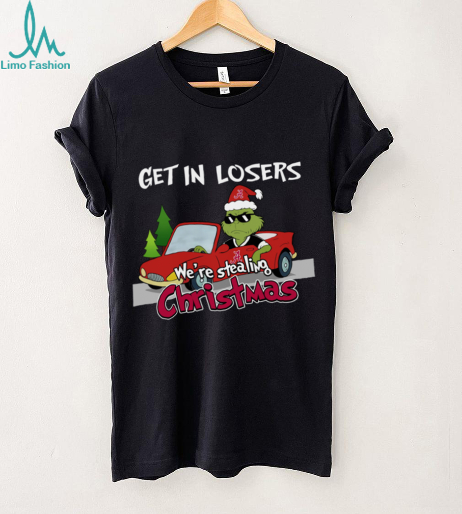 Ready to “steal” the show this Christmas? This Alabama Crimson Tide Grinch T-shirt is perfect for fans who like to add a little mischief to their holiday cheer. Featuring the Grinch with the iconic “Get In Losers, We’re Stealing Christmas” quote, this tee is a hilarious way to celebrate the season and your team.