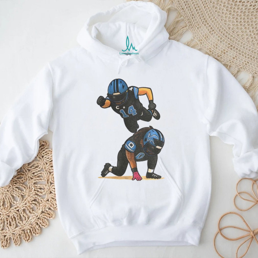 This shirt isn’t just another piece of fan gear; it’s a statement. Pair it with your Lions jersey and get ready to roar! Show your unwavering support and celebrate two of the most exciting players in the NFL. This shirt solves the problem of blending in with the crowd. It’s a bold way to express your Lions fandom. Made from a soft, comfortable fabric, this shirt is perfect for all-day wear. Available in various sizes.