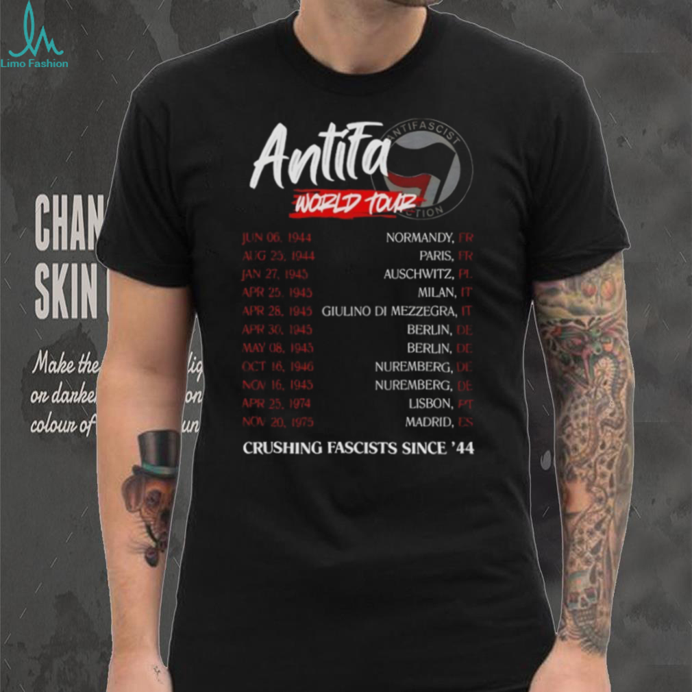 Ready to join the fight against fascism? This Antifa World Tour shirt boldly proclaims your stance! A conversation-starting tee for activists and anyone who believes in a more just world. This tee humorously celebrates the ongoing struggle against fascism since 1944. Wear your beliefs with pride!