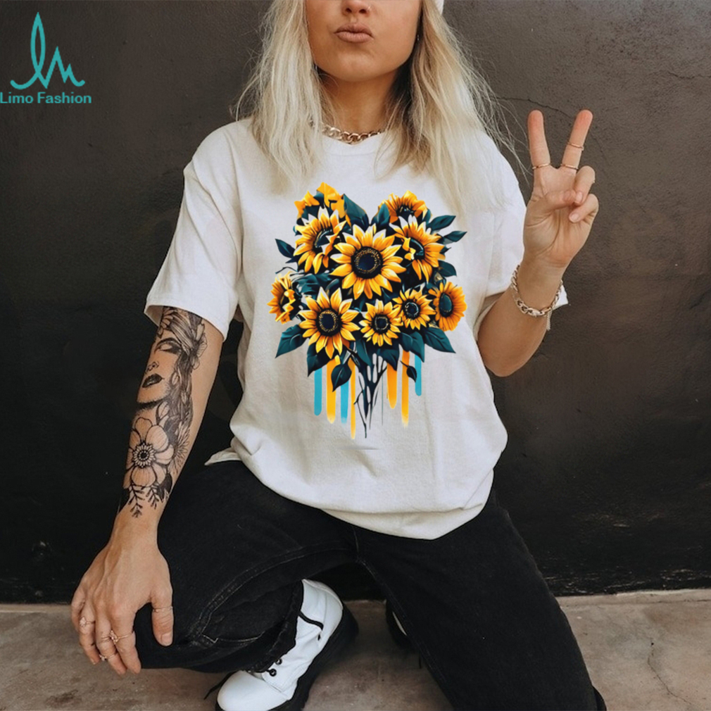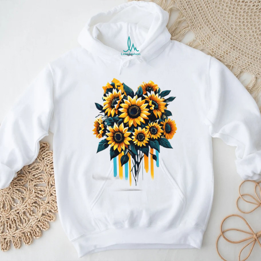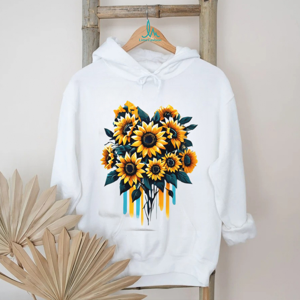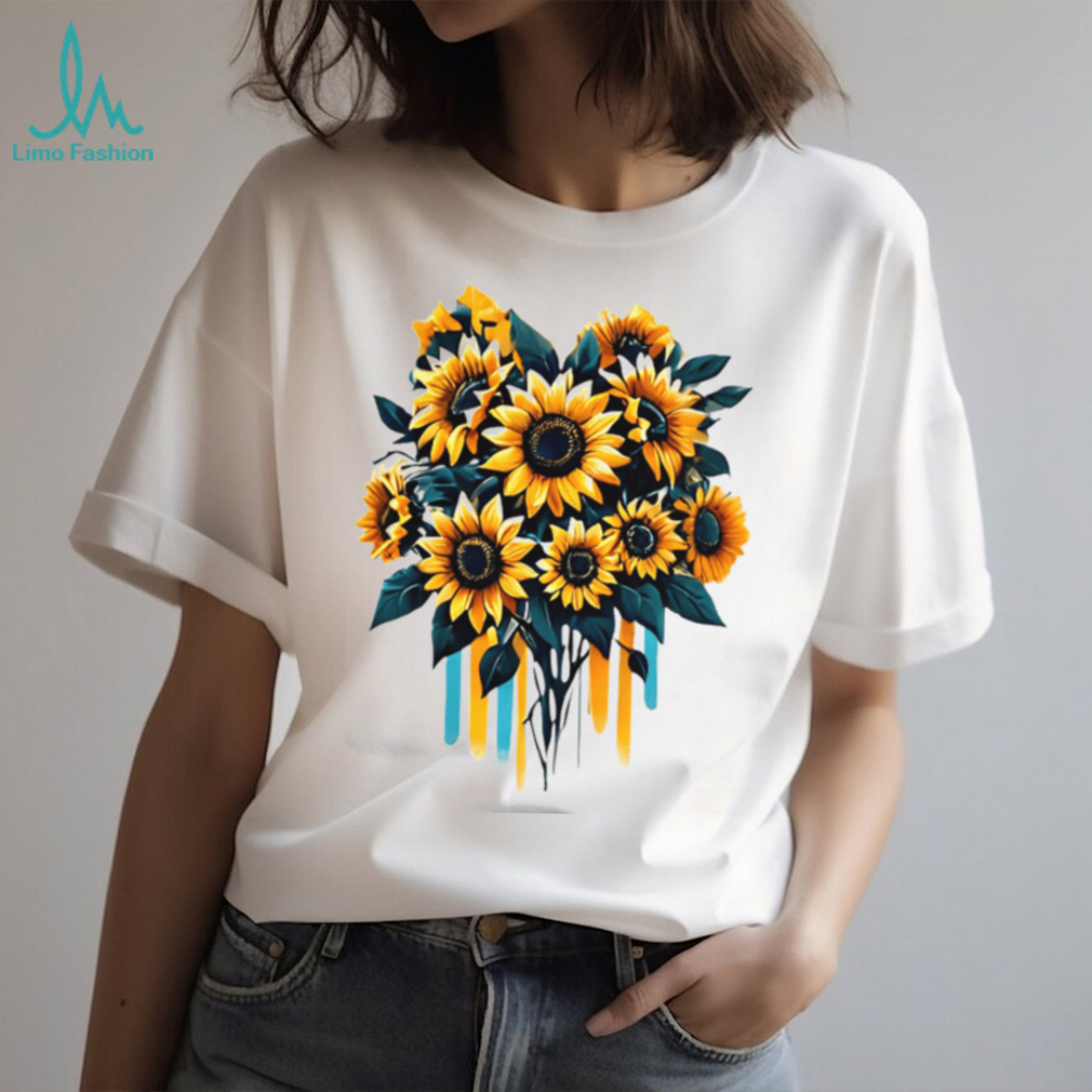 (Artistic Watercolor Sunflower Bouquet Yellow & Teal Floral T Shirt)Artistic Watercolor Sunflower Bouquet Yellow & Teal Floral T Shirt, Treat yourself or make a great gift for your loved ones