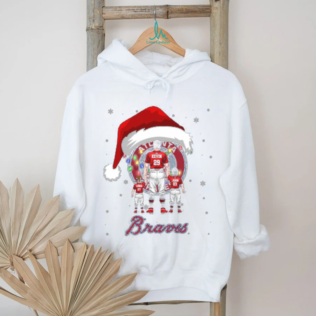 Atlanta Braves Personalized Santa Christmas Lights Shirt – Custom Name MLB Family Tee – Holiday Baseball Gift for Dad, Mom, Kids