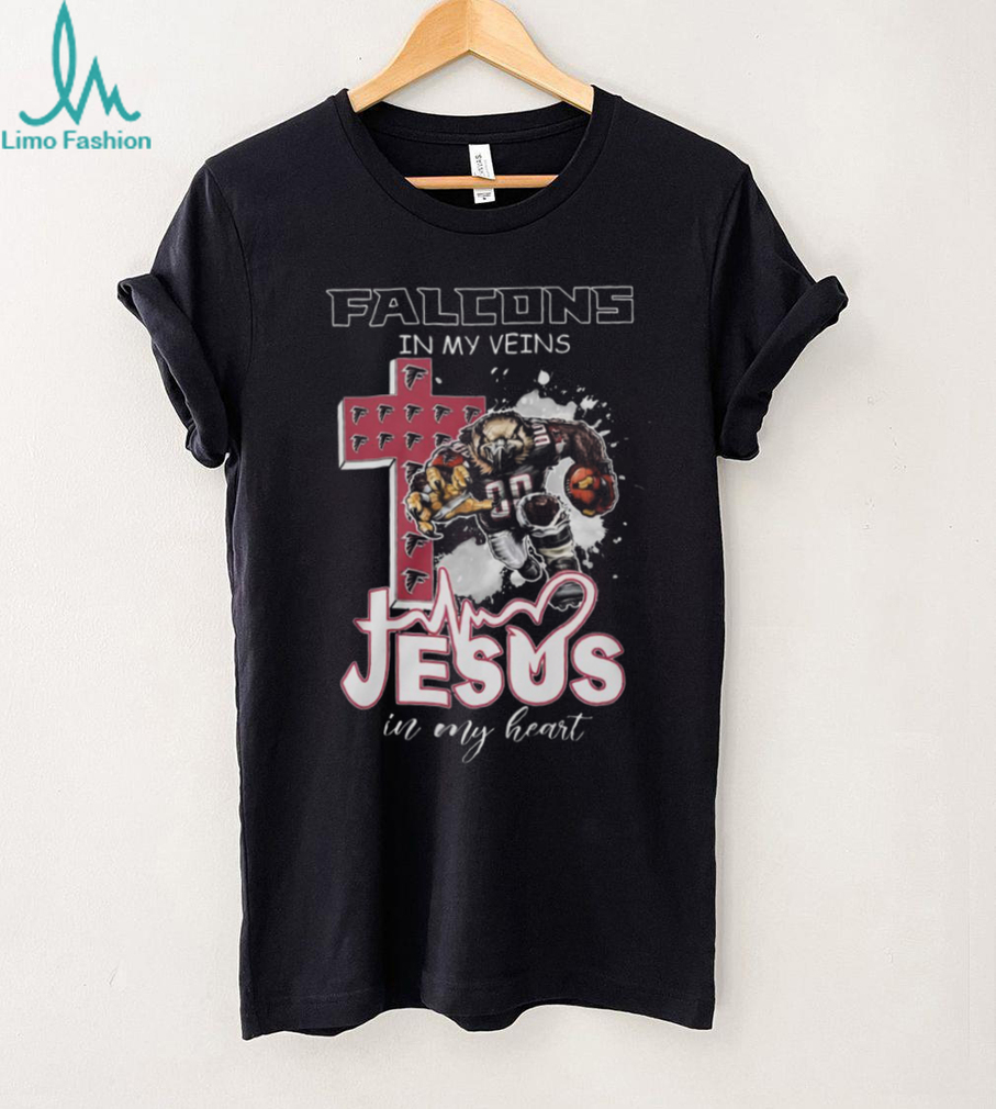 Who Rocks This Best with Atlanta Falcons In My Veins Jesus In My Heart T Shirt