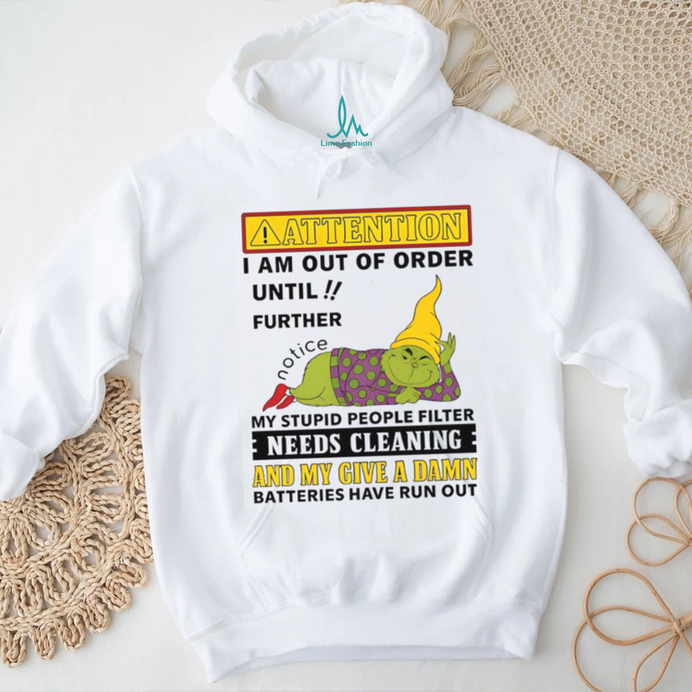 Ever feel like channeling your inner Grinch during the holiday season? This Attention I Am Out Of Order Grinch T shirt perfectly captures those moments when you’re just not in the Christmas spirit! Ideal for Grinch fans with a sense of humor, this tee adds a touch of sarcasm to your festive wardrobe.