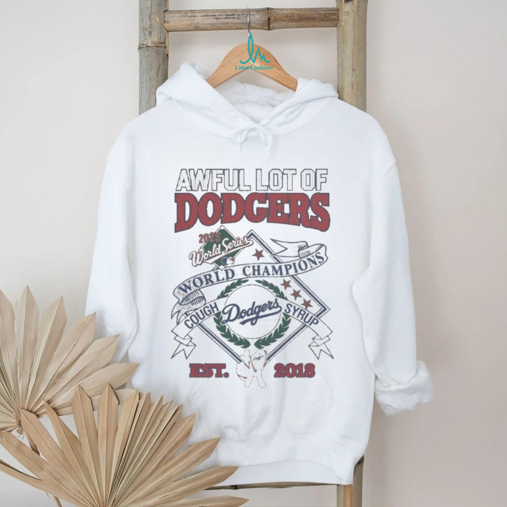This tee isn’t just another championship shirt; it’s a conversation starter. Featuring a playful “cough syrup” reference (a nod to team traditions or inside jokes), this t-shirt sets you apart from the crowd. Crafted from a soft, comfortable cotton blend, it’s ideal for game days or casual wear. The unique design and high-quality print ensure you’ll be repping the Dodgers in style for years to come. This t-shirt solves the problem of bland fan apparel by delivering a hilarious and memorable design that any true Dodgers fan will appreciate!