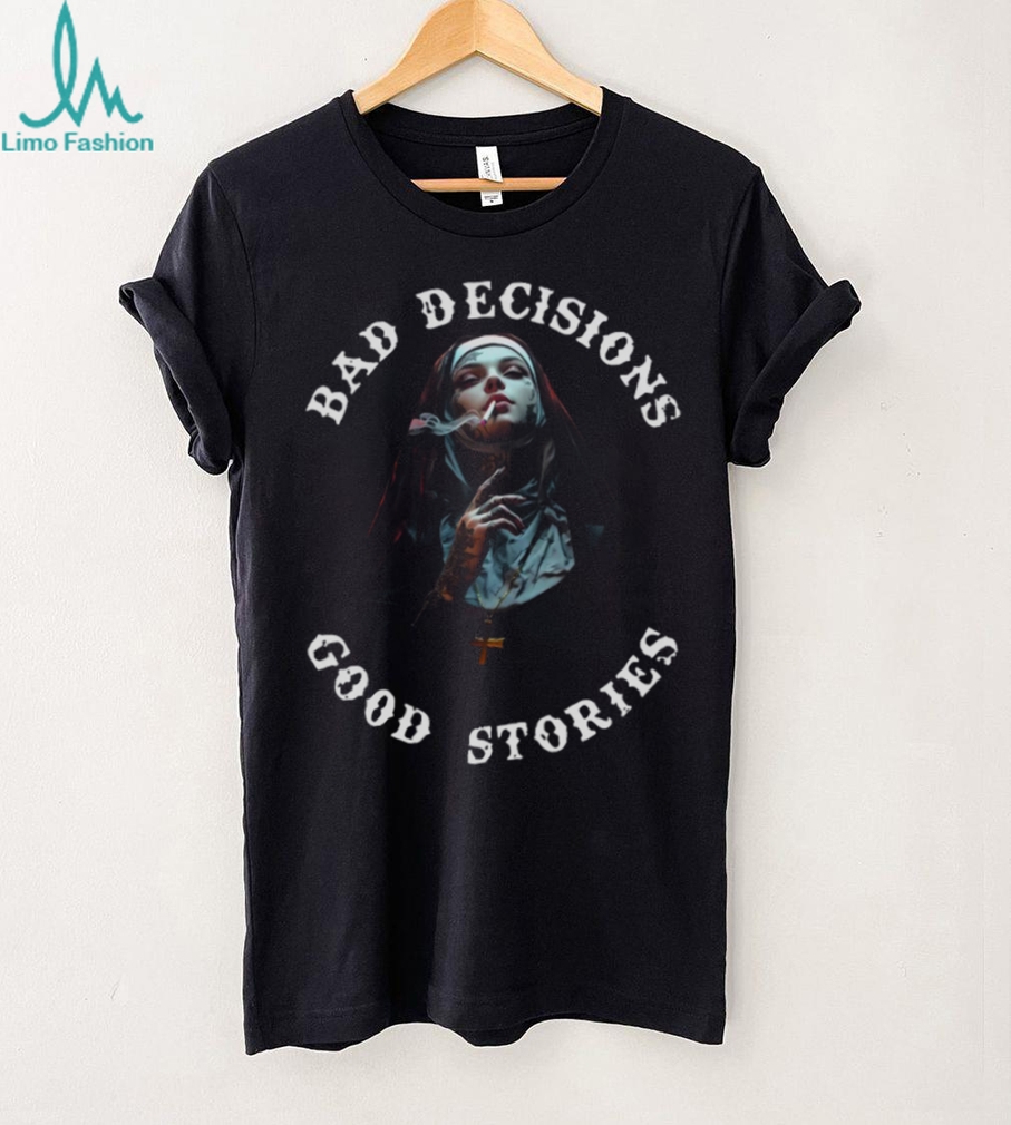 (Bad Decisions Good Stories Tattoos Smoking Nun T Shirt)Bad Decisions Good Stories Tattoos Smoking Nun T Shirt, Treat yourself or make a great gift for your loved ones