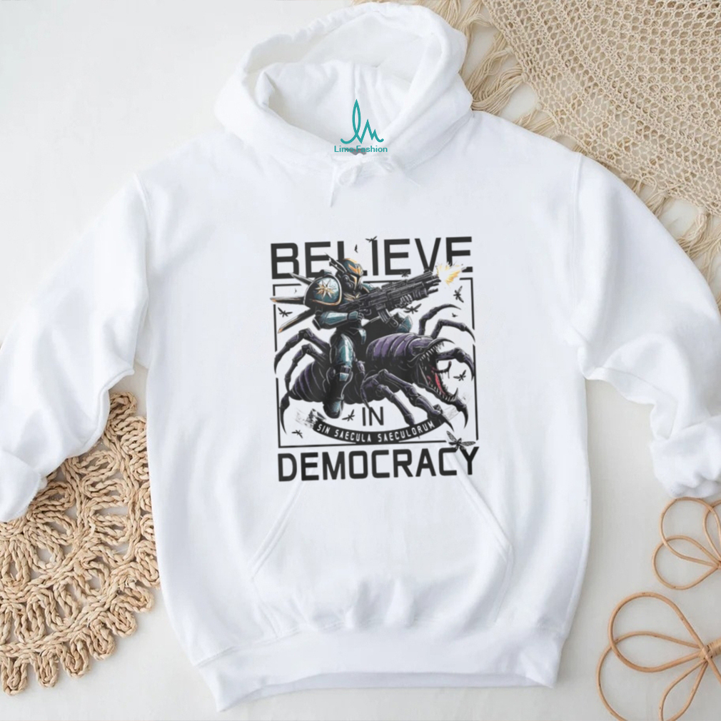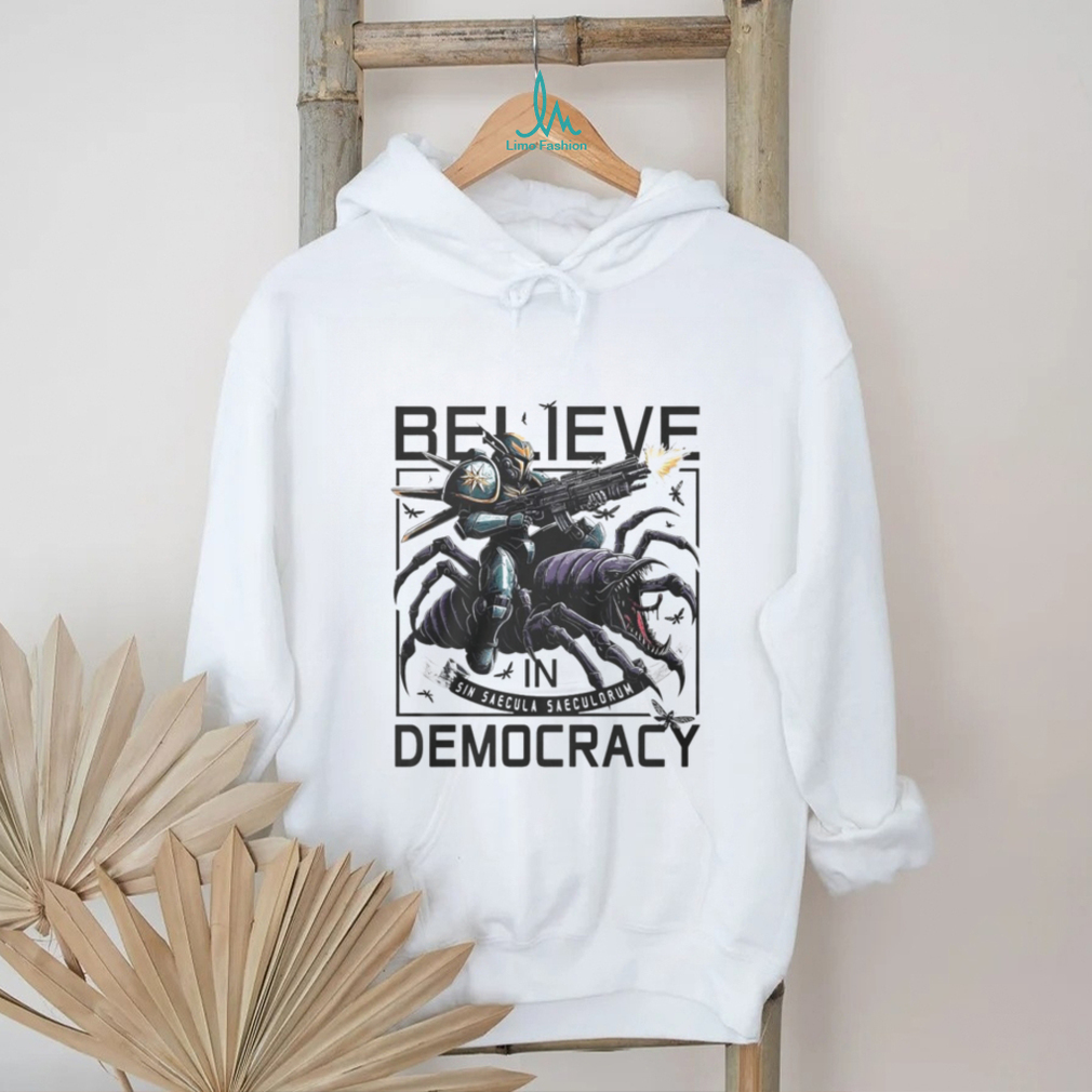 ()Believe In Democracy Helldiver Riding Terminid Bug T Shirt, Treat yourself or make a great gift for your loved ones