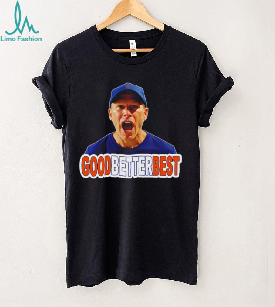 Featuring the iconic “Good Better Best” quote, this shirt is made from a comfortable cotton blend for all-day wear.