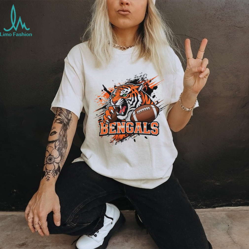 (Bengals Football Action Splash Graphic T Shirt)Representation of the country, consistency in performance, professional challenges and pressure to succeed, all these four things affect the mental health of the players. As an athlete there are always ups and downs but the way we react to those moments decide our future decisions and results. Cue statements/words- Using cue words such as “positive”, “focus on the Bengals Football Action Splash Graphic T Shirt” after each mistake or critical situation to help focus on the upcoming point/task rather than overthinking about the past. Catching the negative thoughts at the initial moment, rather than letting it spiral and creating more damage. This sport has taught me so so much about mental health, I cannot emphasise enough as to how important it is to have your mind in the right frame to help you achieve and conquer your goals and targets. One quote which my coach kept sending me when I was really affected by the loss was “Form is temporary but class is permanent”. Knowing that you can’t always taste success, but you can always rely on your abilities to bounce back stronger than ever and keep your competitive spirit alive.