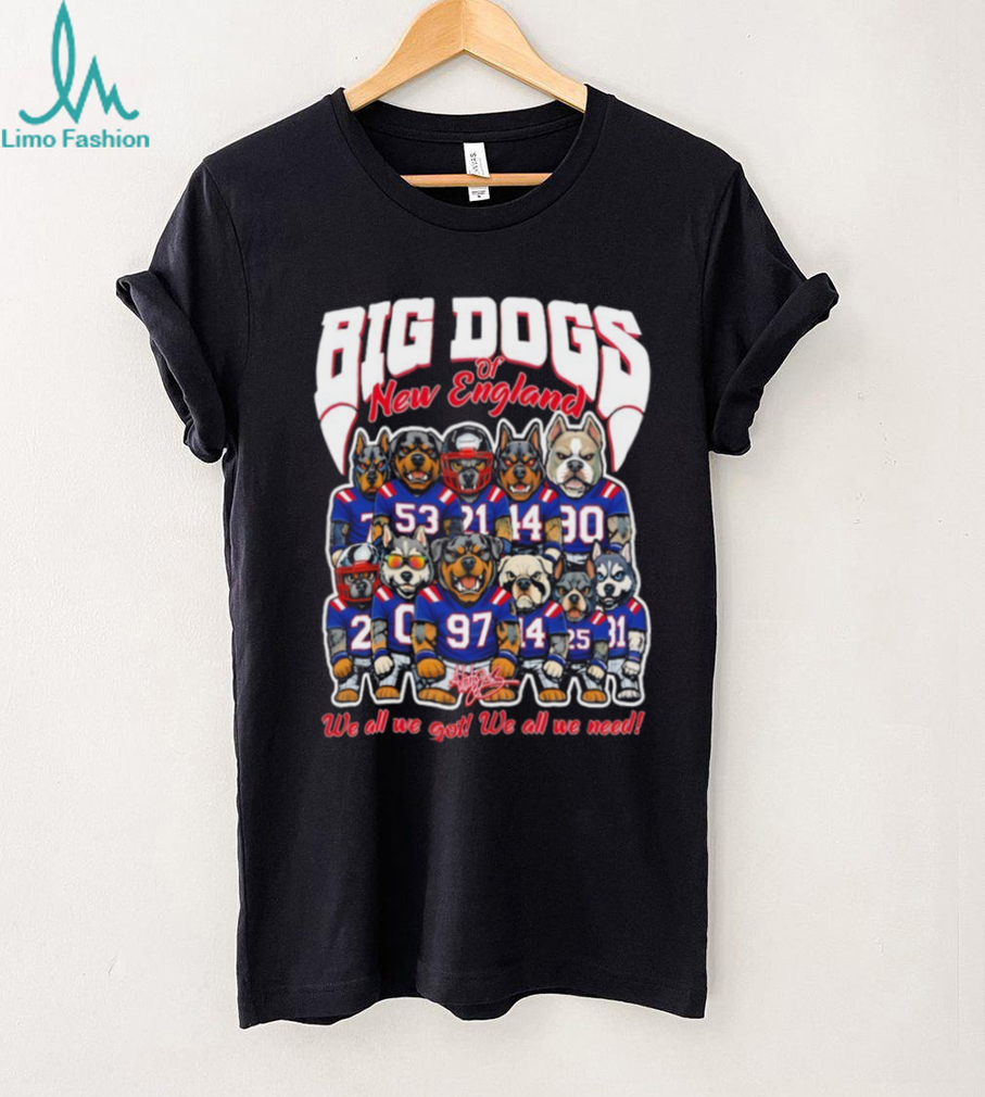 (Big Dogs of New England Patriots Football Fan T Shirt)The Los Angeles Rams were in the hunt for the NFC number one seed for most of the season only to lose out in their duel with the Seattle Seahawks. It’s not common for wild-card qualifiers to win the Super Bowl but the Rams are one of the strongest squads ever and will be looking to emulate the 2020 Buccaneers. Carolina won 31-28 at home in Week 13 as Bryce Young threw three touchdown passes, but the Rams won’t be caught napping in their Big Dogs of New England Patriots Football Fan T Shirt against a grossly inferior Panthers team twice in six weeks. The league’s top-ranked scoring attack will roll.
