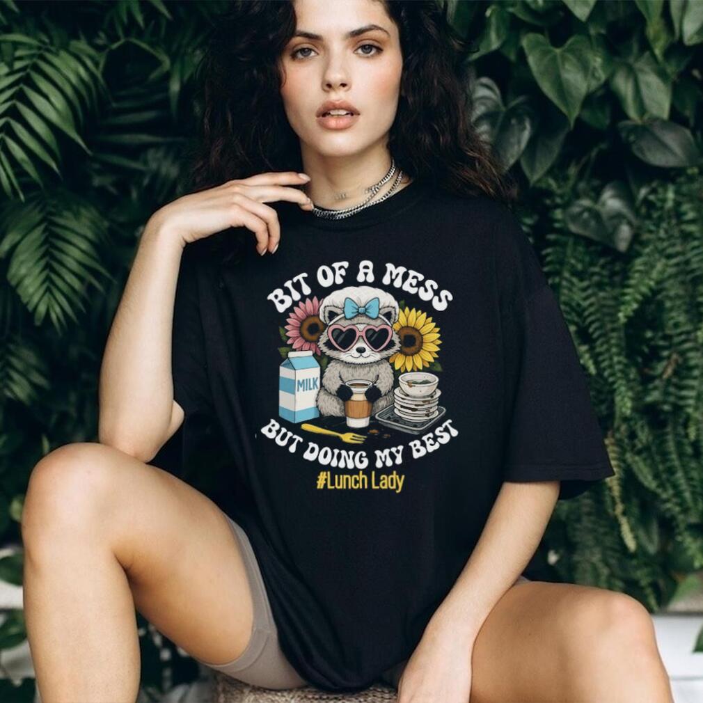 👕About Bit of a Mess but Doing My Best Funny Raccoon Lunch Lady T Shirt