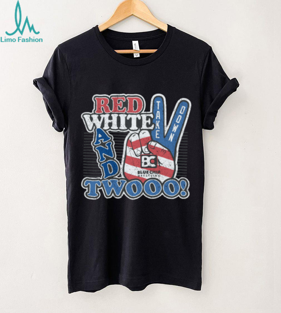 Bluechip Wrestling Shop Red White And Two Short Sleeve Wrestling Tee Shirt