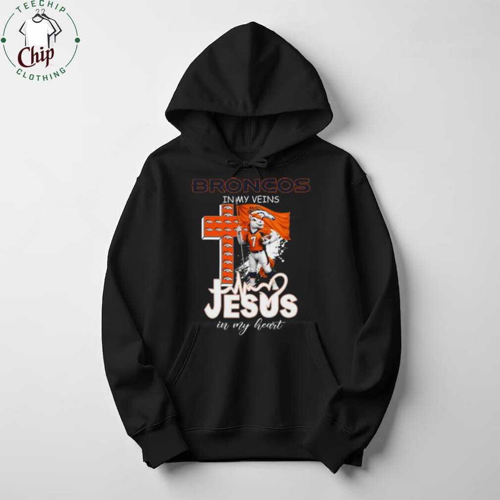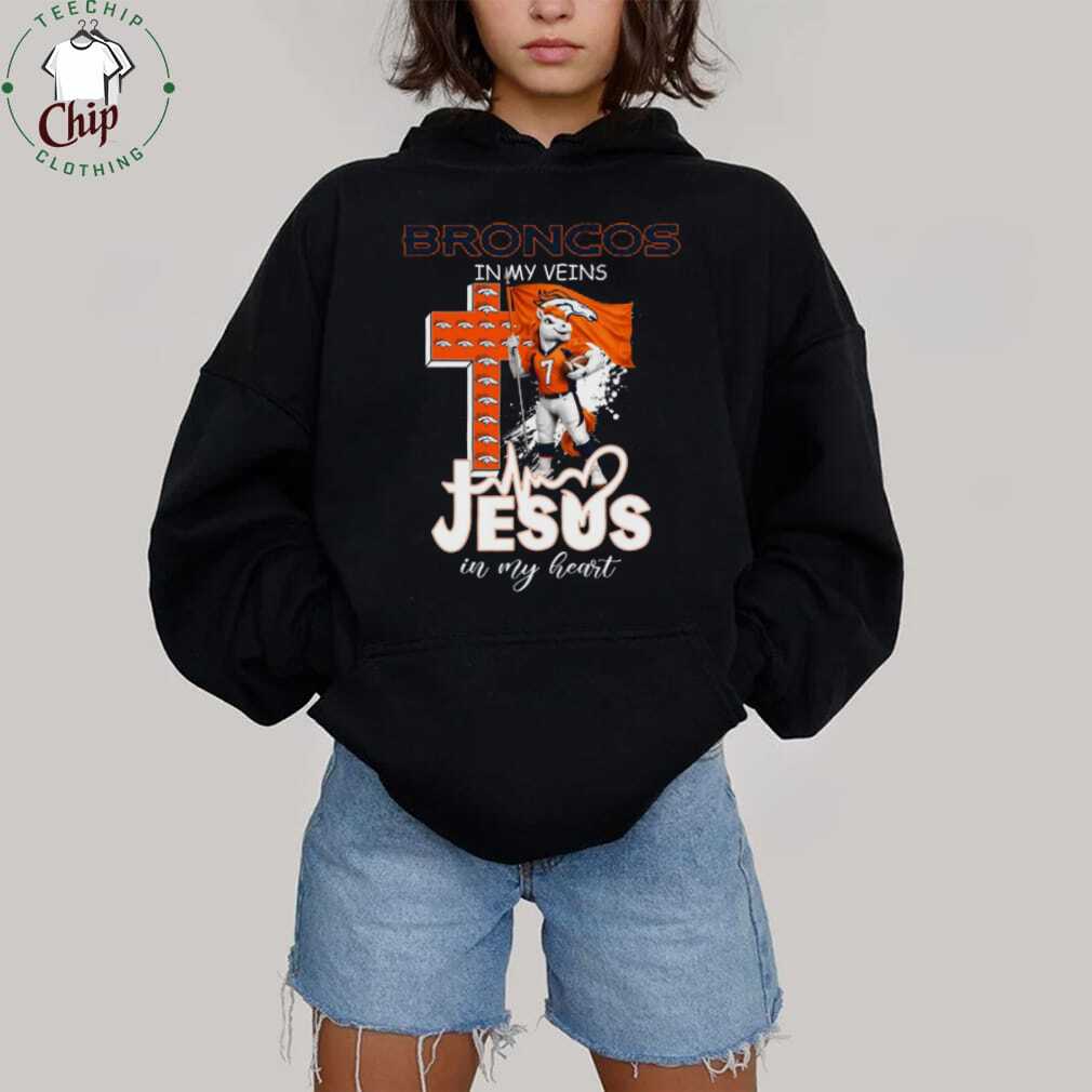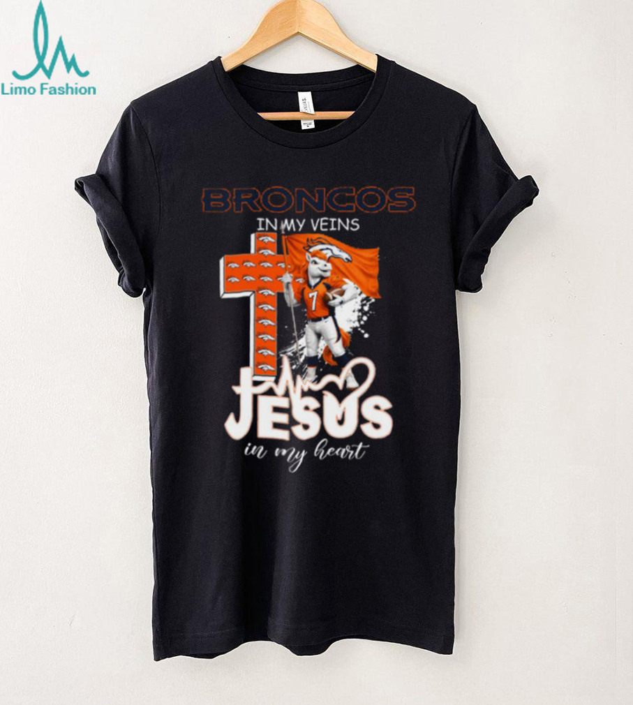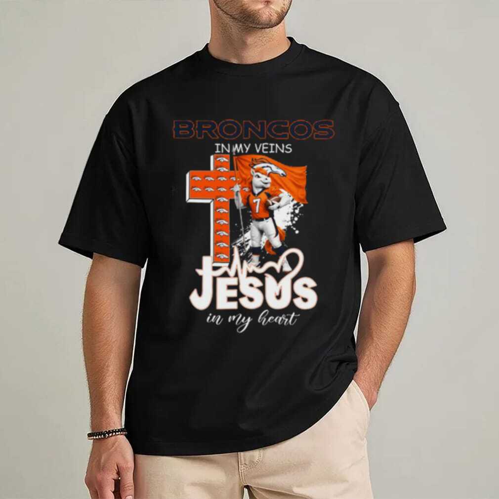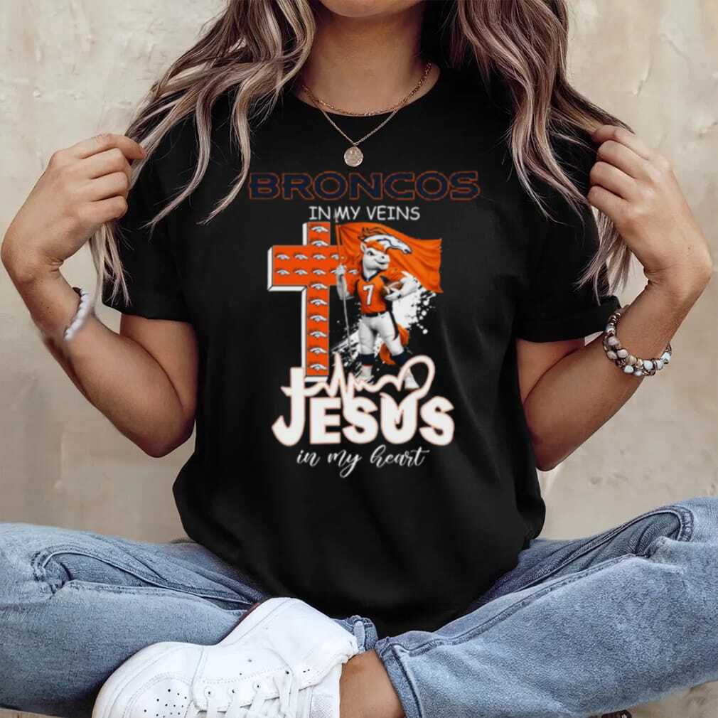 ()Broncos in My Veins, Jesus in My Heart T Shirt, Treat yourself or make a great gift for your loved ones