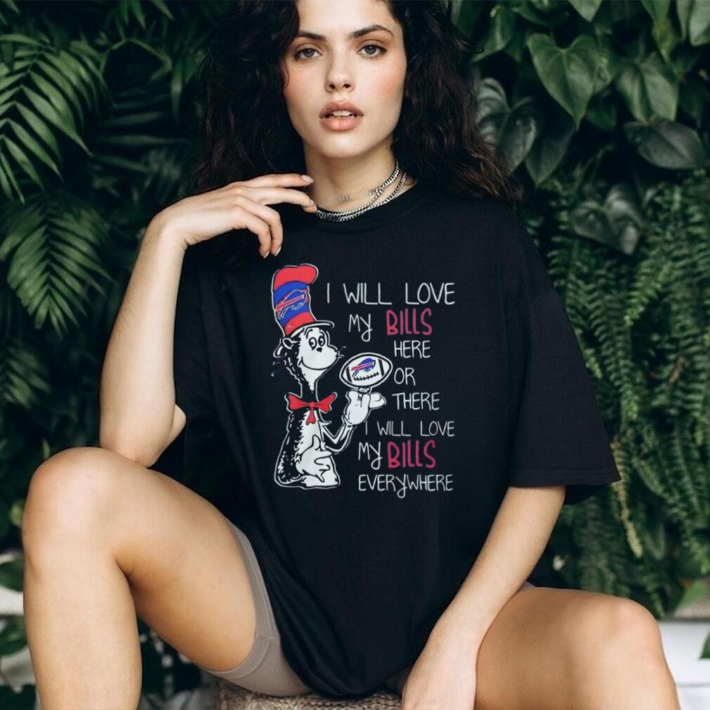 Ever wondered what happens when the whimsical world of Dr. Seuss crashes into the thrilling universe of the NFL? Get ready for a touchdown of fun with our Buffalo Bills Here or There Cat in the Hat Graphic T Shirt! This playful tee brings together your favorite mischievous cat and your unwavering loyalty to the Buffalo Bills. It’s an instant conversation starter, whether you’re at the stadium, a holiday gathering, or just out and about. This shirt is for every fan who loves a good laugh and wants to showcase their team spirit with a unique, unforgettable design.