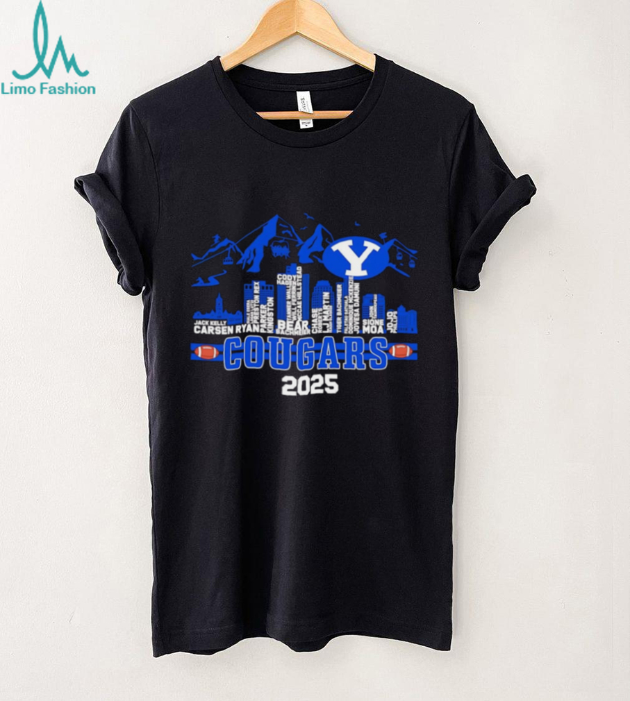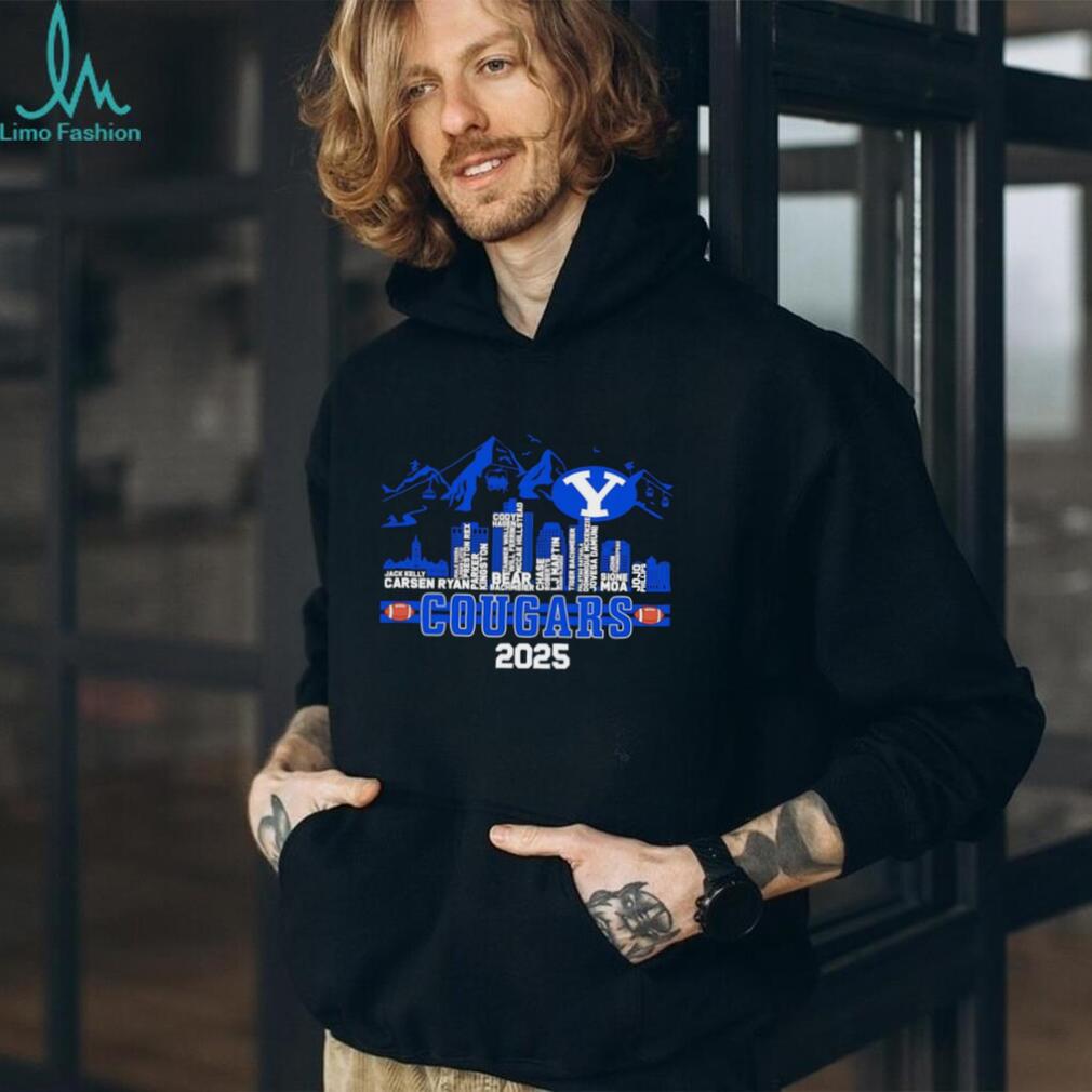 Show your BYU Cougars pride with this unique skyline shirt featuring player names! Imagine yourself wearing this shirt at the next game, cheering on your team in style. It’s more than just a shirt; it’s a statement of loyalty and passion for BYU football. Perfect for students, alumni, and die-hard fans, this shirt lets you carry the spirit of BYU wherever you go.
