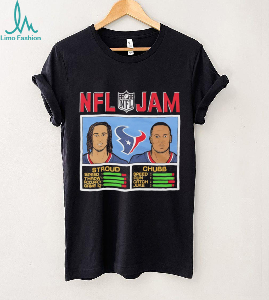 Celebrate the dynamic duo of C.J. Stroud and Nick Chubb with this awesome NFL Jam Houston Texans shirt! It’s a perfect tribute to these star players, perfect for any Texans fan.