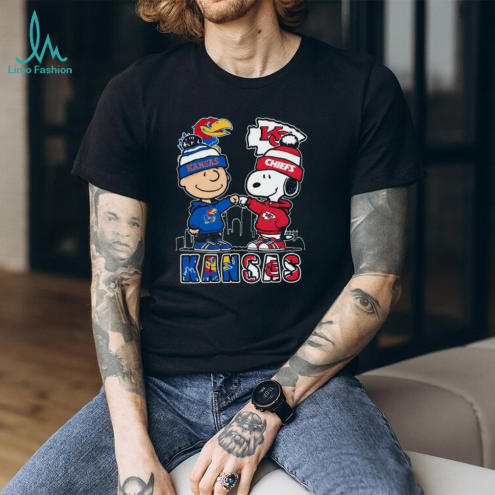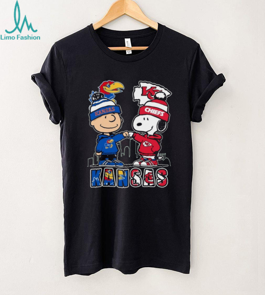 Charlie Brown and Snoopy Kansas Jayhawks & Kansas City Chiefs T Shirt