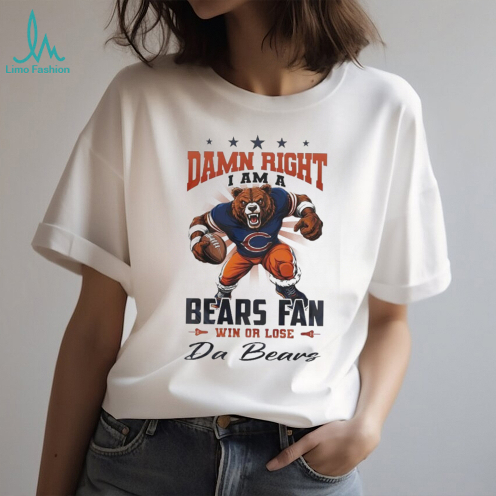 ()Chicago Bears Mascot Damn Right I Am A Bears Fan Win Or Lose NFL Da Bears 2026 Unisex T shirt, Treat yourself or make a great gift for your loved ones