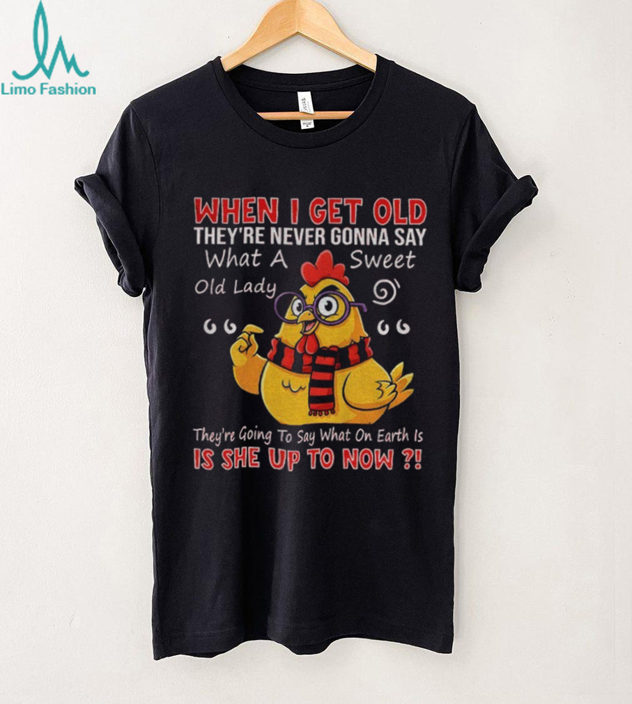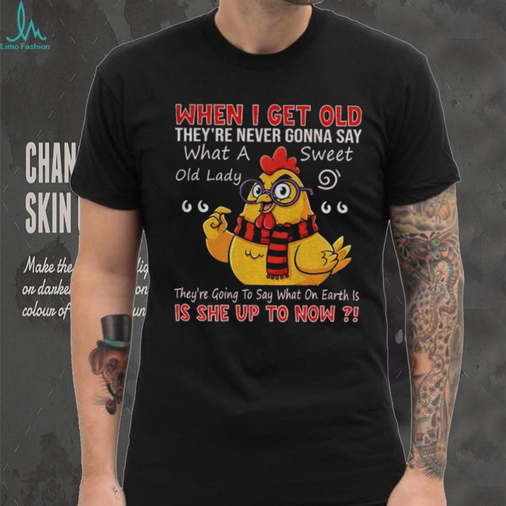 • This item: Chicken when I get old they’re never gonna say what a sweet old lady shirt Original price was: $28.99.Current price is: $21.95.