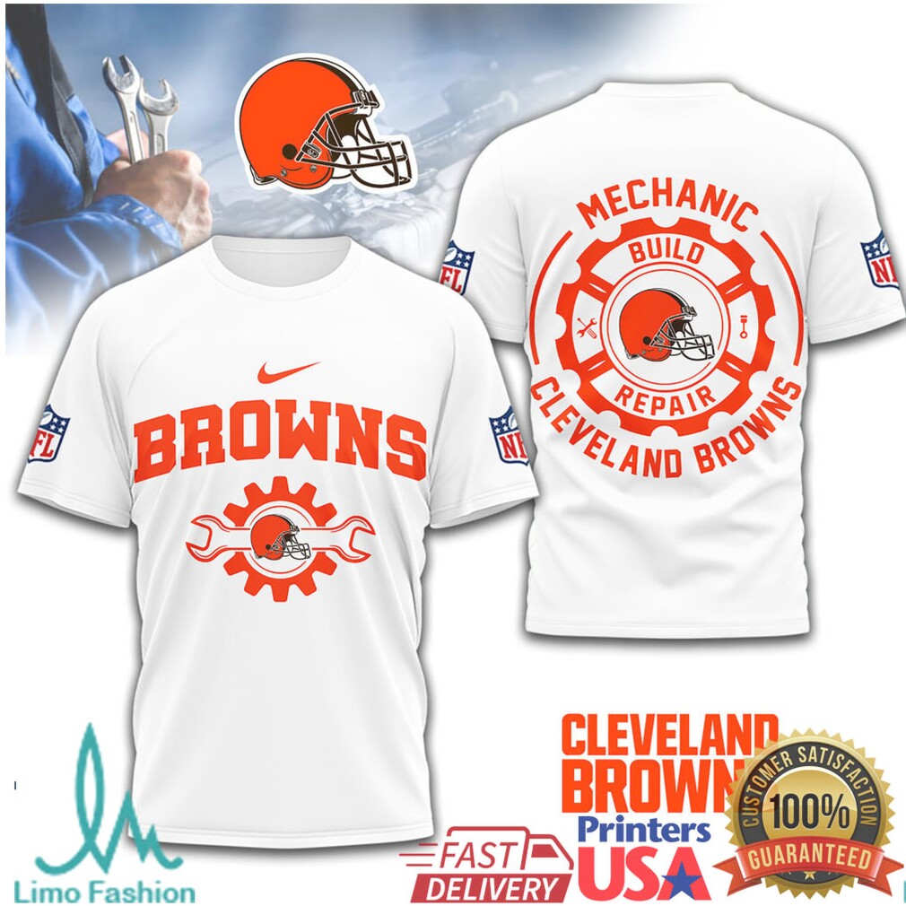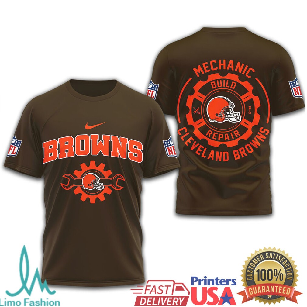 Imagine the roar of the crowd, the smell of fresh-cut grass, and the unmistakable grit of a mechanic’s garage – all rolled into one incredible piece of fan gear. The Cleveland Browns Official NFL Mechanic 3D Shirt is more than just a shirt; it’s a bold fusion for the fan who works hard and plays harder. Designed for those who bleed brown and orange and also appreciate the honest work of a mechanic, this 3D shirt is unique. If you’re a devoted Browns fan looking for comfortable, standout apparel that truly represents your passions, this shirt is crafted for you.