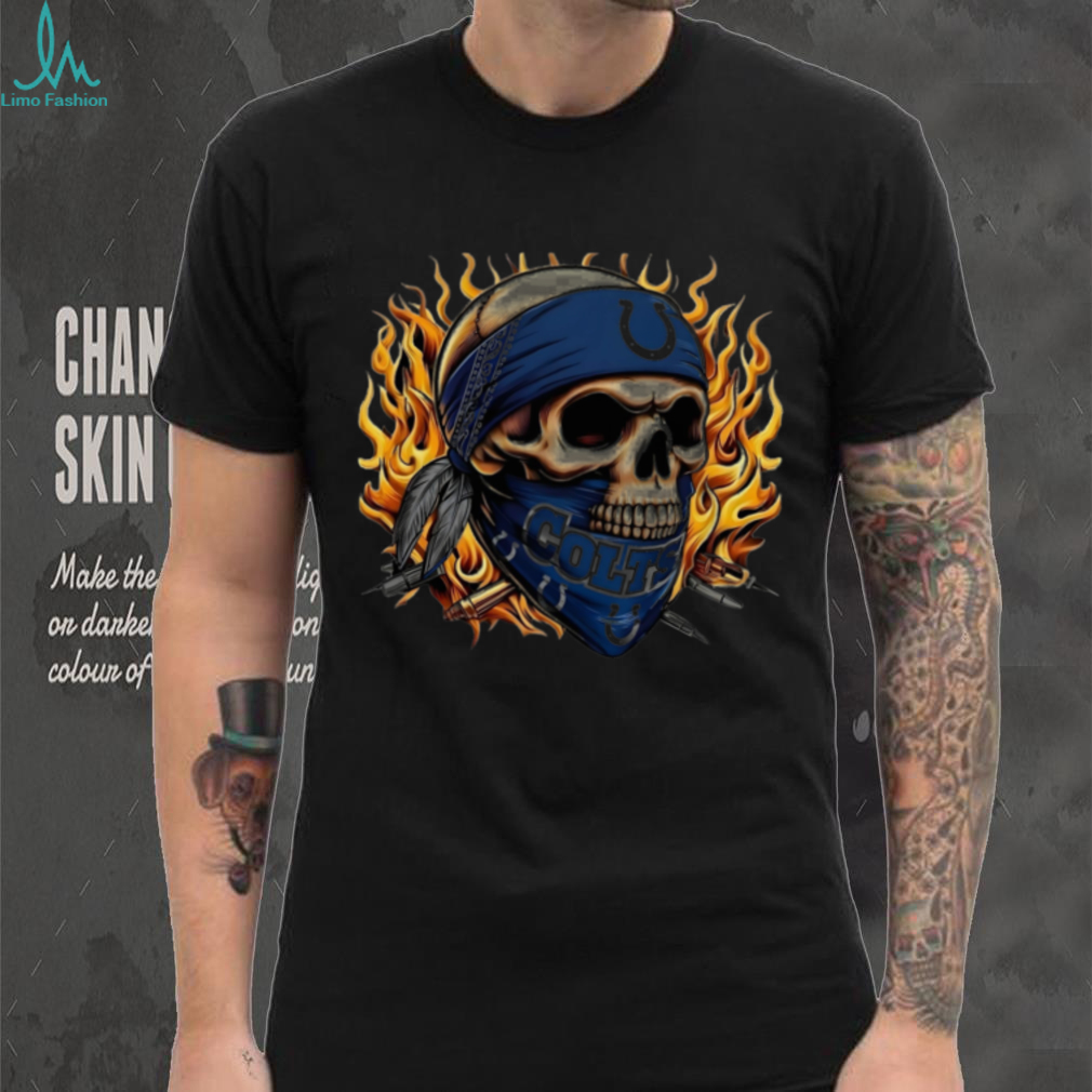 Show your Colts pride with a fierce edge in this Colts Skull Flame Bandana Tee. This isn’t your average fan shirt; it’s a bold statement for those who live and breathe Indianapolis football. The striking skull design combined with the iconic Colts logo creates a unique look that will turn heads wherever you go. Perfect for game days, tailgates, or just repping your team on the streets.