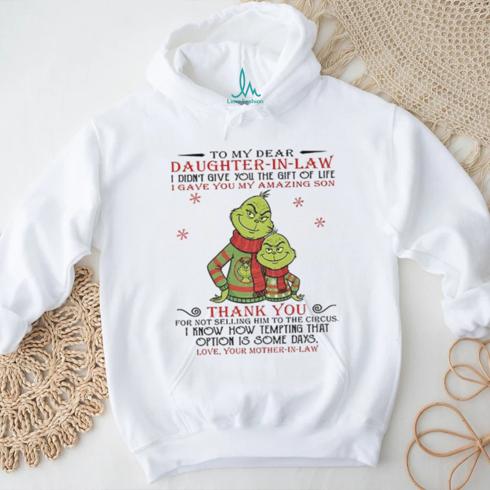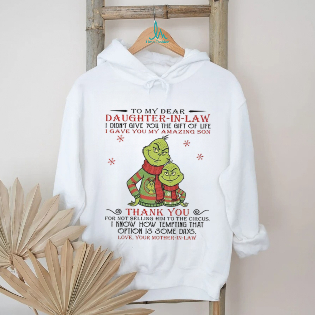Couple Grinch Santa to my dear daughter in law I didn’t give you the gift of life christmas shirt