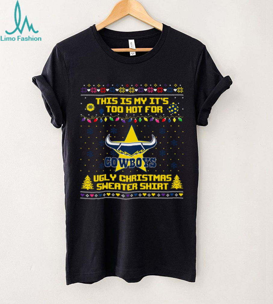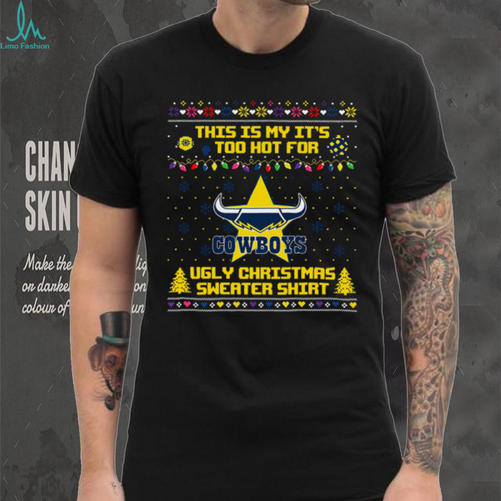 Ditch the bulky sweater this Christmas and show your Dallas Cowboys pride with this hilarious “It’s Too Hot For Sweater” T-shirt! Perfect for those warmer holiday climates or anyone who wants a funny twist on the traditional ugly Christmas sweater. This tee combines team spirit with festive humor, making it a standout choice for any Cowboys fan.