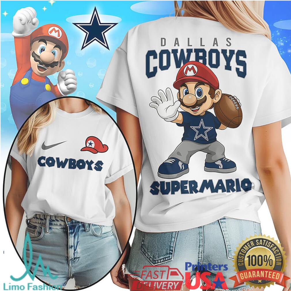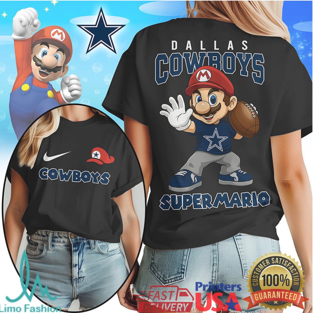 This Dallas Cowboys Super Mario shirt is a standout. Crafted from a soft, breathable cotton blend, it ensures comfort for tailgating, cheering from your couch, or casual wear. The design expertly blends the iconic Dallas Cowboys star with beloved Super Mario characters, creating a fun visual that’s sure to get smiles and nods of approval, as seen in the first image . It’s a comfortable, easy-to-wear tee that offers a fresh take on showing team spirit, perfect for any fan who enjoys a good mashup.