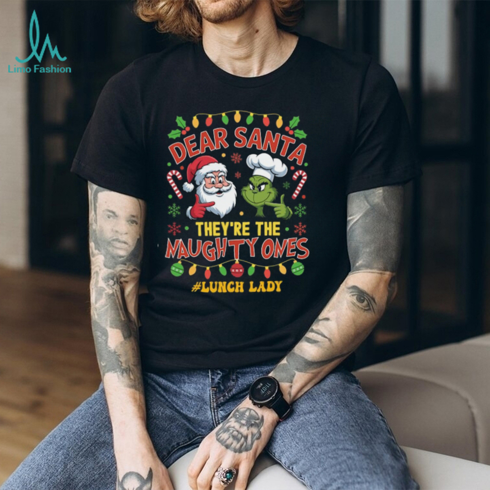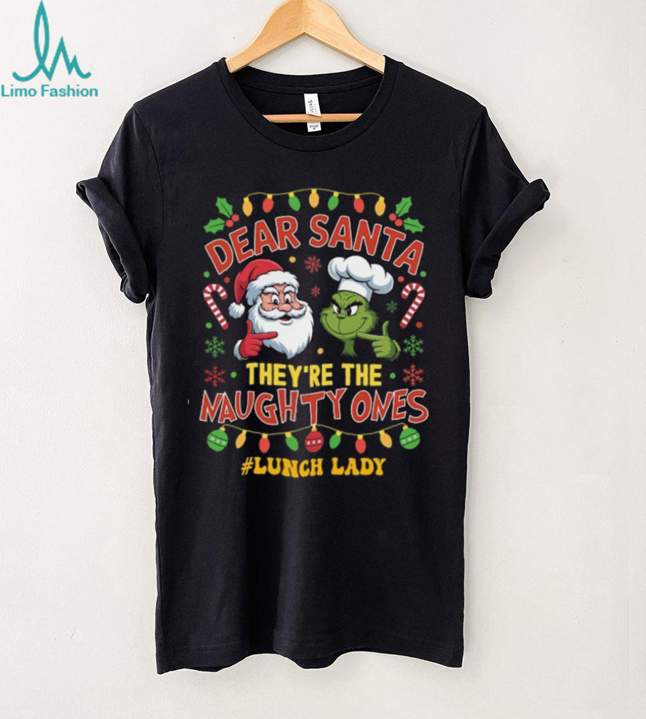 This isn’t just a funny statement; it’s a comfortable and festive way to bring smiles to the cafeteria. The “Dear Santa They’re the Naughty Ones Grinch & Santa Lunch Lady Christmas T Shirt” features a hilarious graphic of both the Grinch and Santa, perfectly framing that relatable lunch lady sentiment. Made from a soft, breathable cotton blend, this tee is designed for long shifts and comfortable wear, whether you’re serving up holiday specials or enjoying a well-deserved break. The print is durable and vibrant, ready to withstand the busiest of school days and many Christmases to come. Available in various sizes, it ensures a great fit for every hardworking lunch lady.