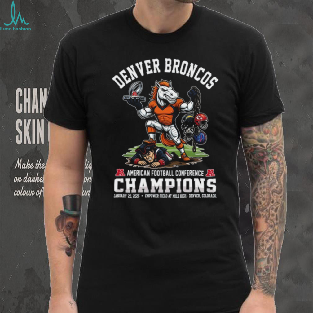(Denver Broncos AFC Champions 2026 Victory Mascot Football T Shirt)Denver Broncos AFC Champions 2026 Victory Mascot Football T Shirt, Treat yourself or make a great gift for your loved ones
