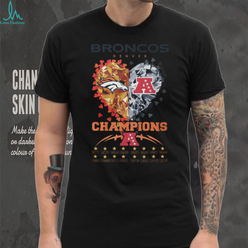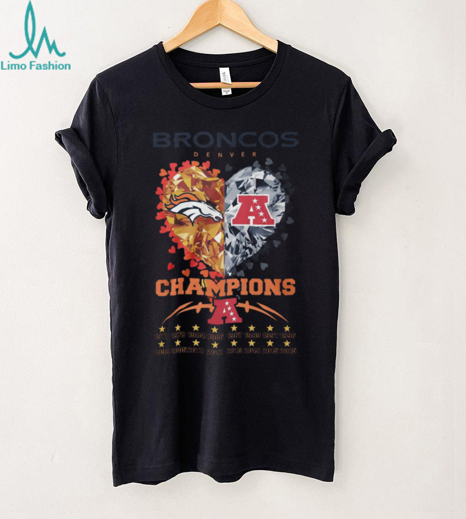 (Denver Broncos AFC Champions Diamond Heart Anniversary Years Commemorative T Shirt)Denver Broncos AFC Champions Diamond Heart Anniversary Years Commemorative T Shirt, Treat yourself or make a great gift for your loved ones