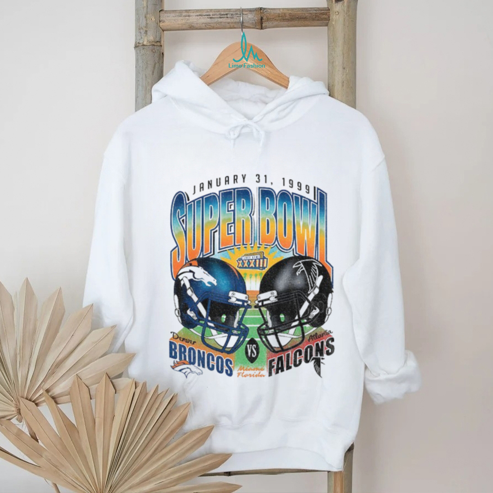 To preserve the legacy of your Denver Broncos vs Atlanta Falcons Super Bowl XXXIII Football January 31 1999 shirt, wash it inside out in cold water with similar colors. Tumble dry low or air dry. Avoid ironing directly on the printed design to protect the print.