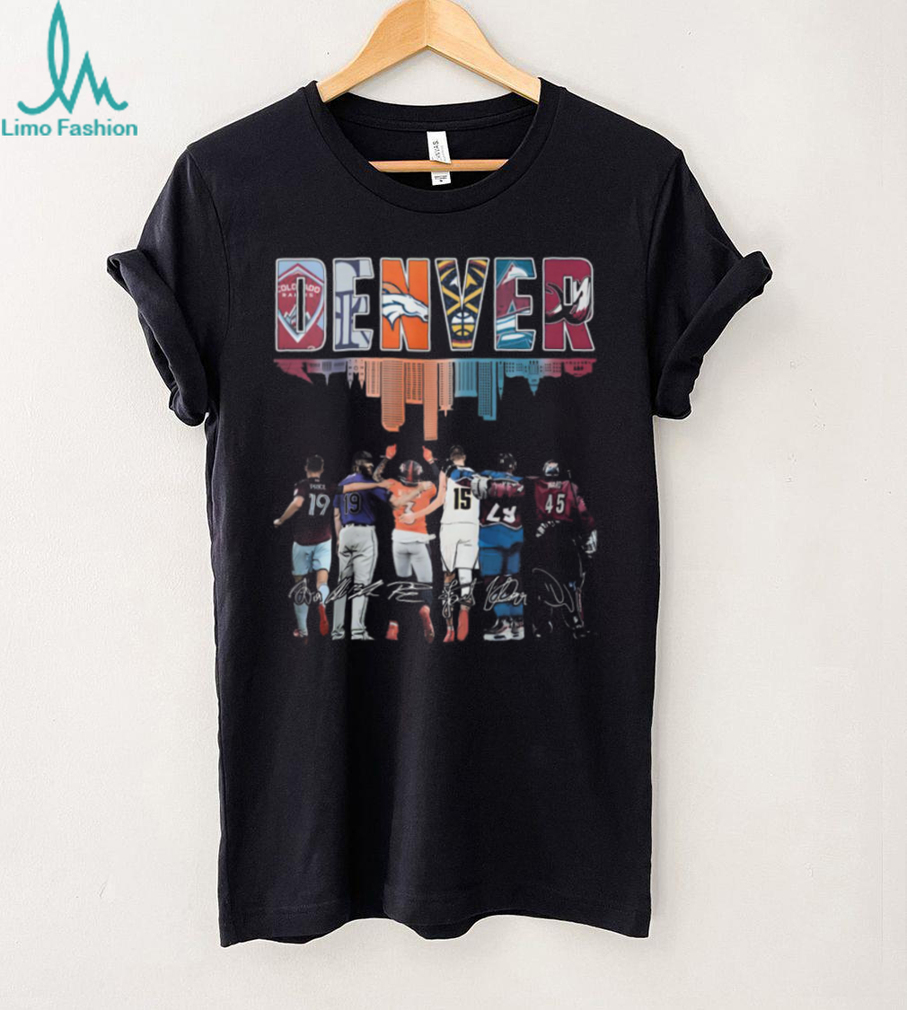 Denver City Sports Teams Players Arm In Arm Skyline Art T Shirt, Treat yourself or make a great gift for your loved ones