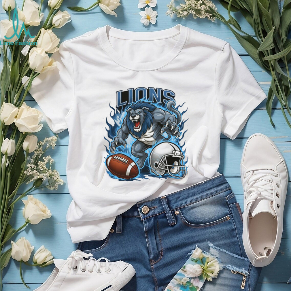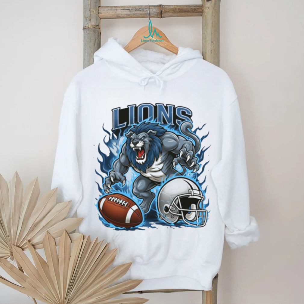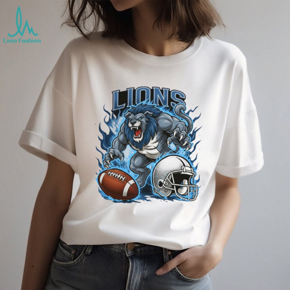 (Detroit Lions Blue Fire Football Mascot Shirt)Sports helps us with motivation and rewards. Essentially, the dopamine neurotransmitters related to rewards, risk and challenges. So essentially sports helps not in just physical fitness but also helps in maintaining hormones such as dopamine, oxytocin and endorphins. For mental health the most important part is learning the art of thoughts and emotional regulation. So sport alone cannot guarantee that a person will not get depression or anxiety. It’s very much needed but the tricky situation is you don’t feel like doing any exercise when you are stressed up. But, try once. You will realise how relaxing it would be when you are wearing Detroit Lions Blue Fire Football Mascot Shirt or are mentally drained up or under emotional stress. Take control of your body and push it to do some physical activity. Exercise. If your physical health is good, mental health also will be good generally. You will have the strength to face stressful situations. But, unfortunately sometimes some unexpected accidents, traumas, diseases, may happen however healthy you are. They leave deep scars on mind and heart. Then, exercise and medication only the ways to come out of them apart from professional healing.