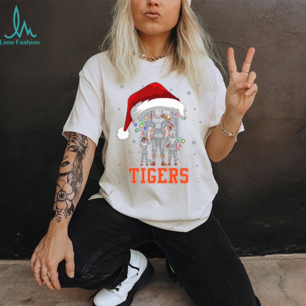 Detroit Tigers Custom Name Santa Christmas Lights Tee – Personalized MLB Family Shirt – Holiday Baseball Gift for Dad, Mom, Kids