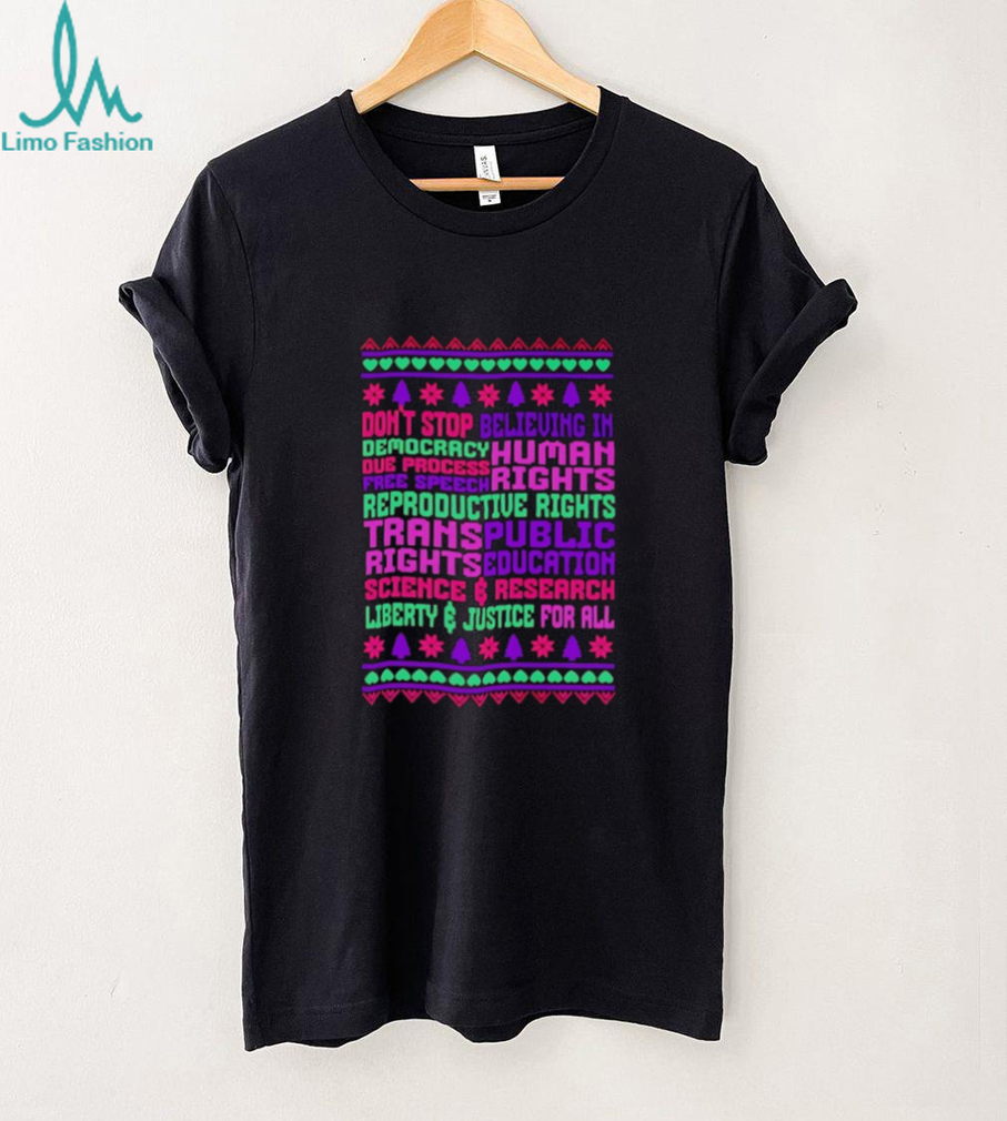 Wear your beliefs on your sleeve, or rather, on your chest! This “Don’t stop believing in Democracy, due process, free speech, human rights” shirt is for those who stand for something. Imagine sparking conversations and inspiring others simply by wearing this powerful message. Perfect for rallies, protests, or everyday wear, this tee lets you advocate for what you believe in.