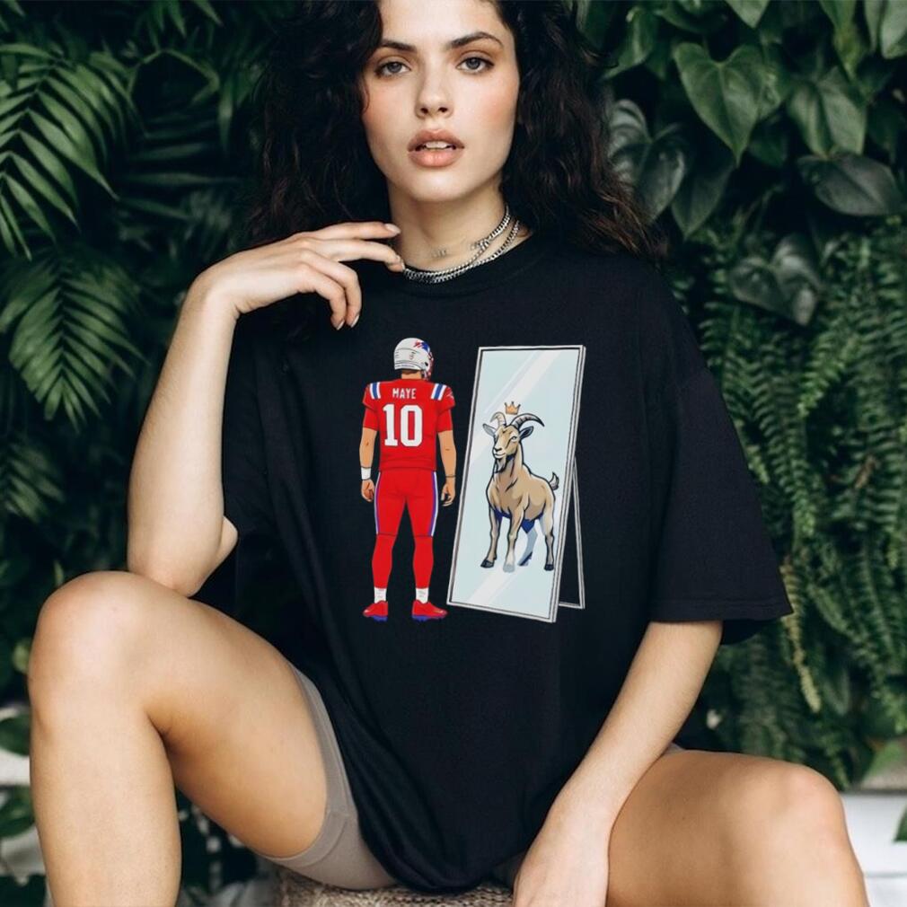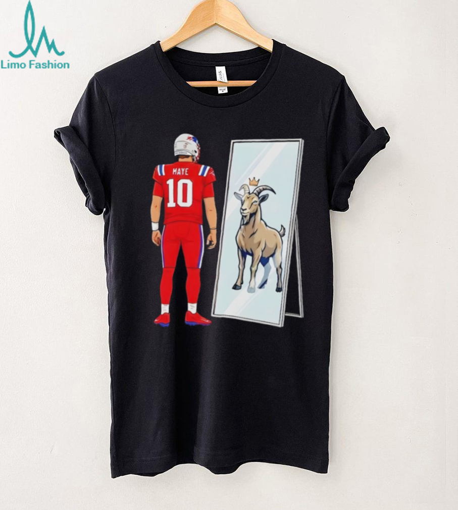 In baseball, the “Pat Venditte Rule” exists because of a specific 2008 minor league game where an ambidextrous pitcher and a switch-hitter spent several minutes walking back and forth to opposite sides of the mound and plate, neither wanting to give up the tactical advantage. To end the stalemate, MLB Official Rule 5.07(f) now requires the pitcher to visually indicate which hand they will use first; the batter then chooses Drake Maye 10 Mirror Goat New England Patriots Football 2026 t shirt. Once set, the pitcher cannot switch hands until that specific at-bat is over, unless an injury occurs.