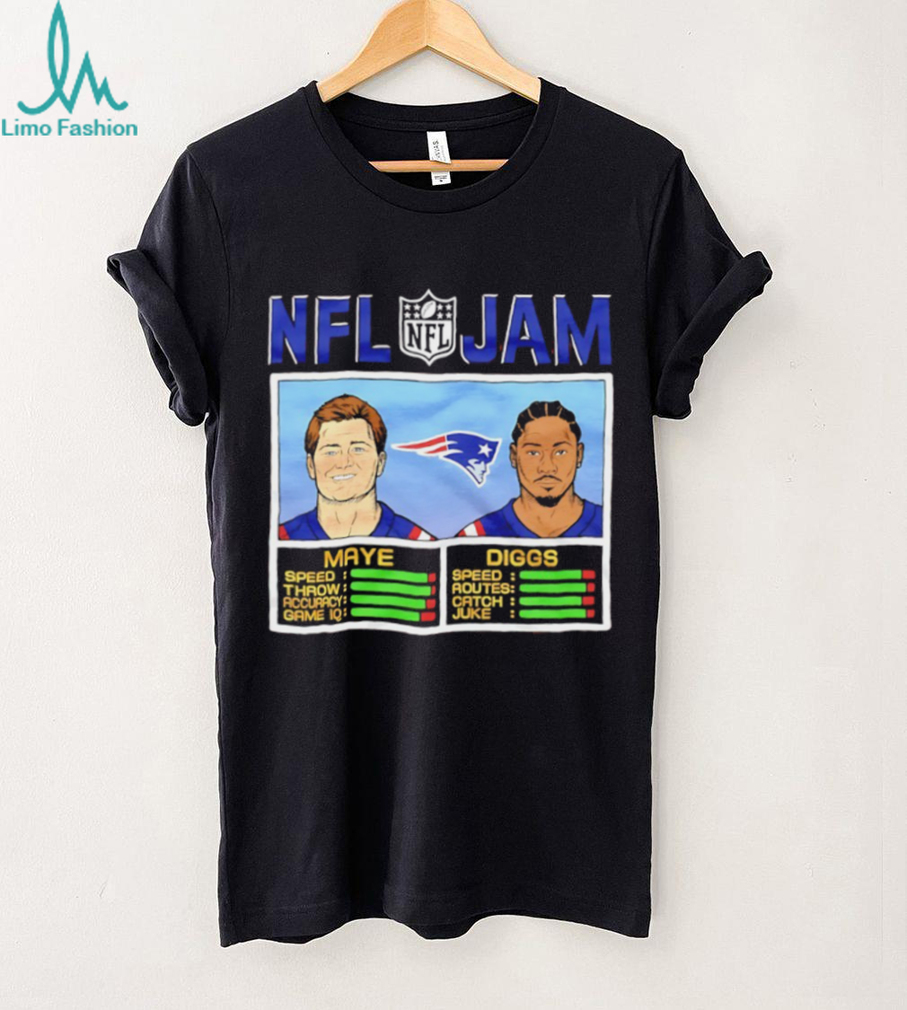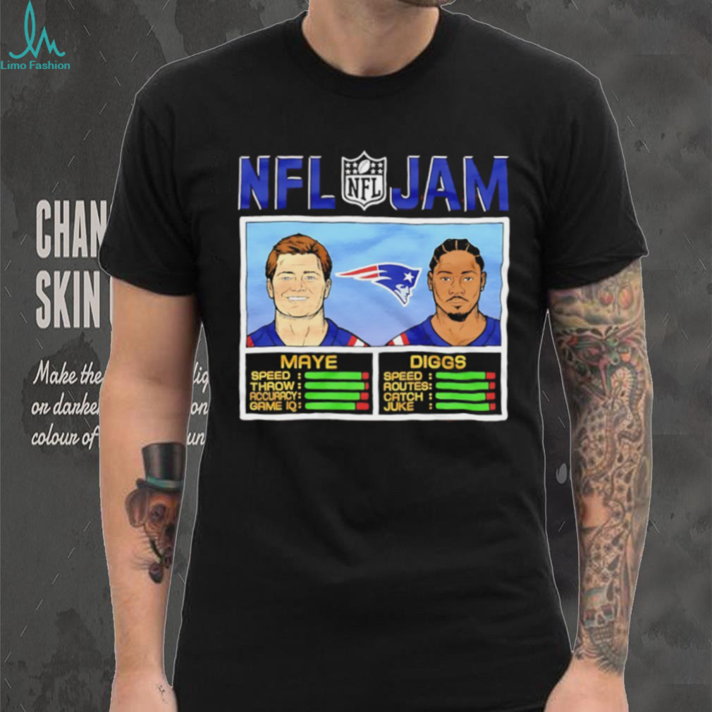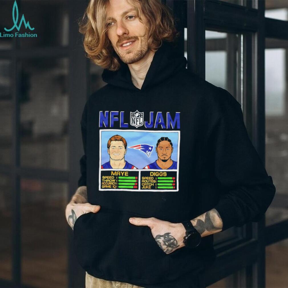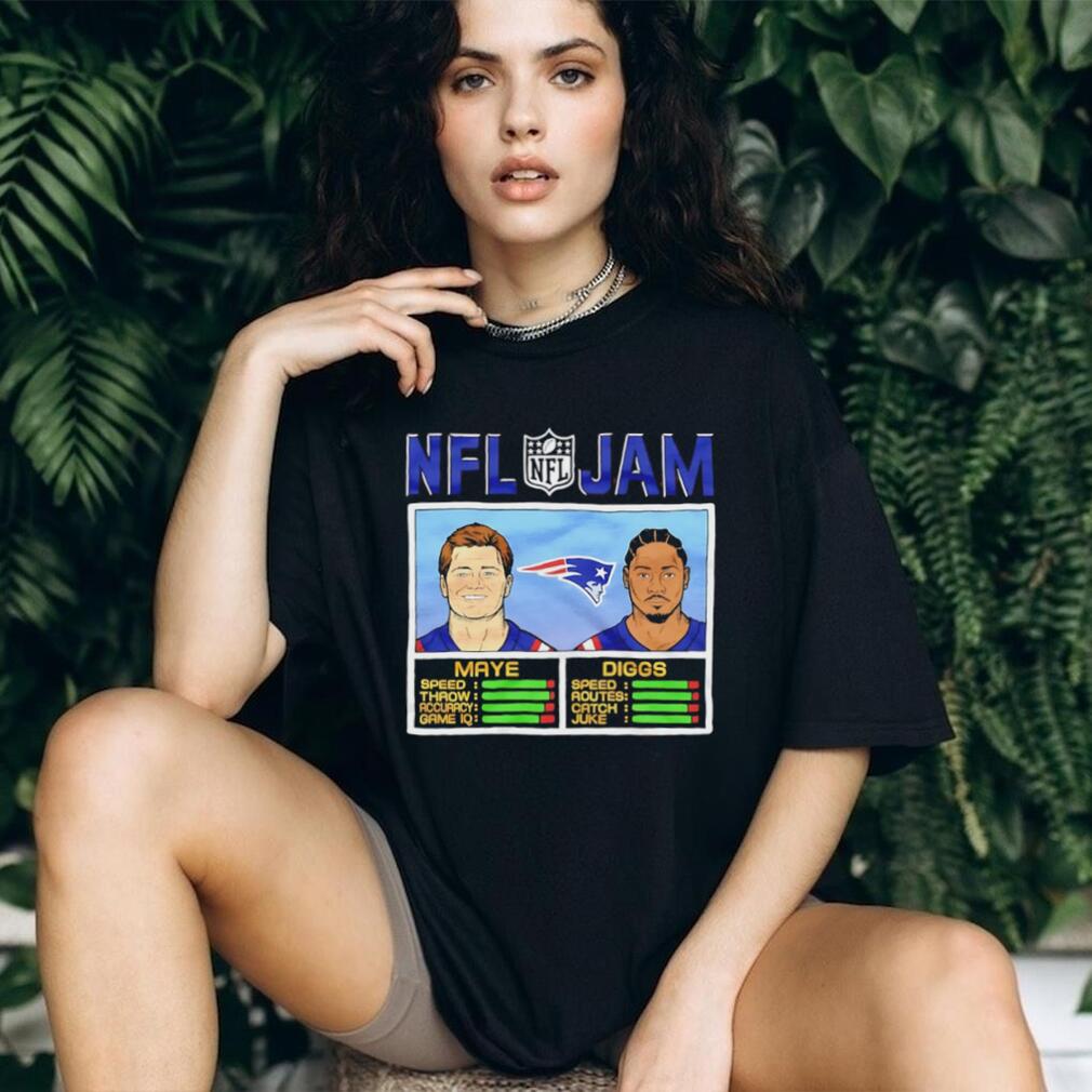 Get ready for the exciting new era of Patriots football with this Drake Maye and Stefon Diggs NFL Jam shirt! This shirt is a perfect way to show your excitement for the upcoming season.