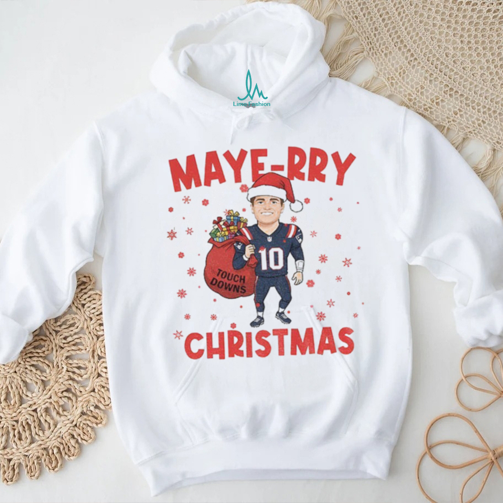 This New England Patriots Christmas shirt combines team spirit with holiday fun. The design features Drake Maye in a festive Santa Claus motif, making it a unique and eye-catching piece. Made from a soft and breathable cotton blend, this shirt ensures comfort throughout the holiday season. It’s a great way to celebrate the holidays and show support for your team and its rising star. Available in a variety of sizes, making it easy to find the perfect fit for any Patriots enthusiast.