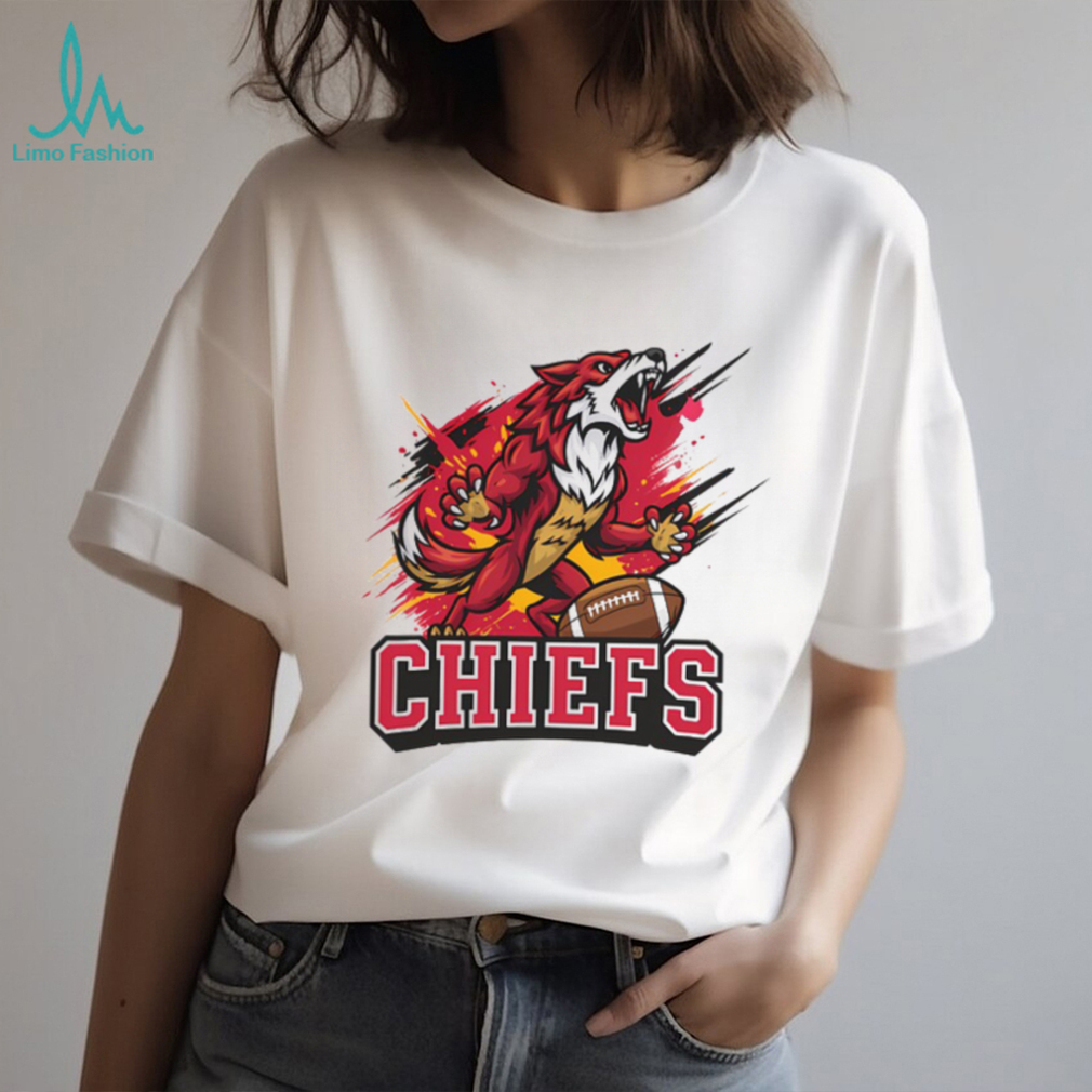 (Fierce Chiefs Wolf Mascot Graphic Tee Football Sports Apparel)