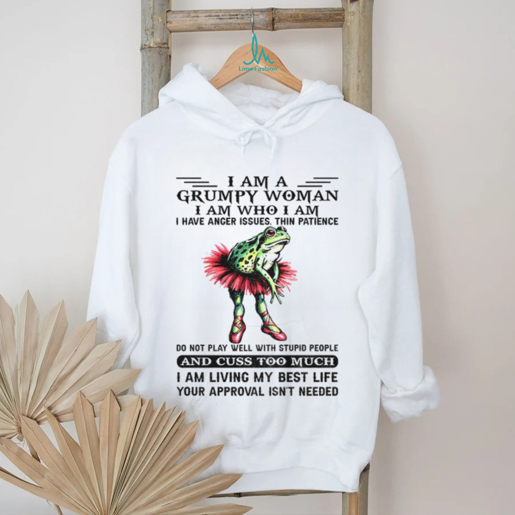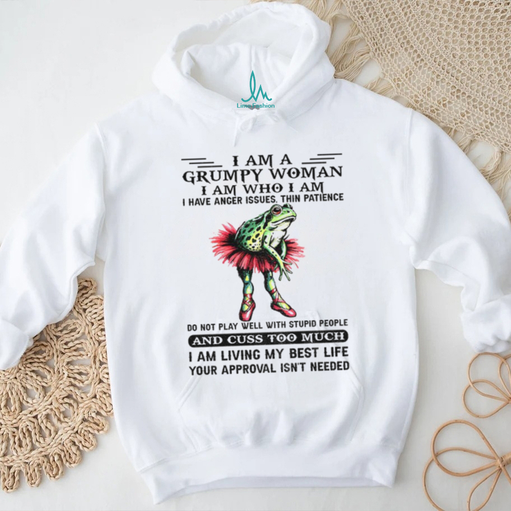 With each Frog dancing I am a grumpy woman I am who I am I have anger issues thin patience do not play well shirt, you are contributing to creating a green tree.