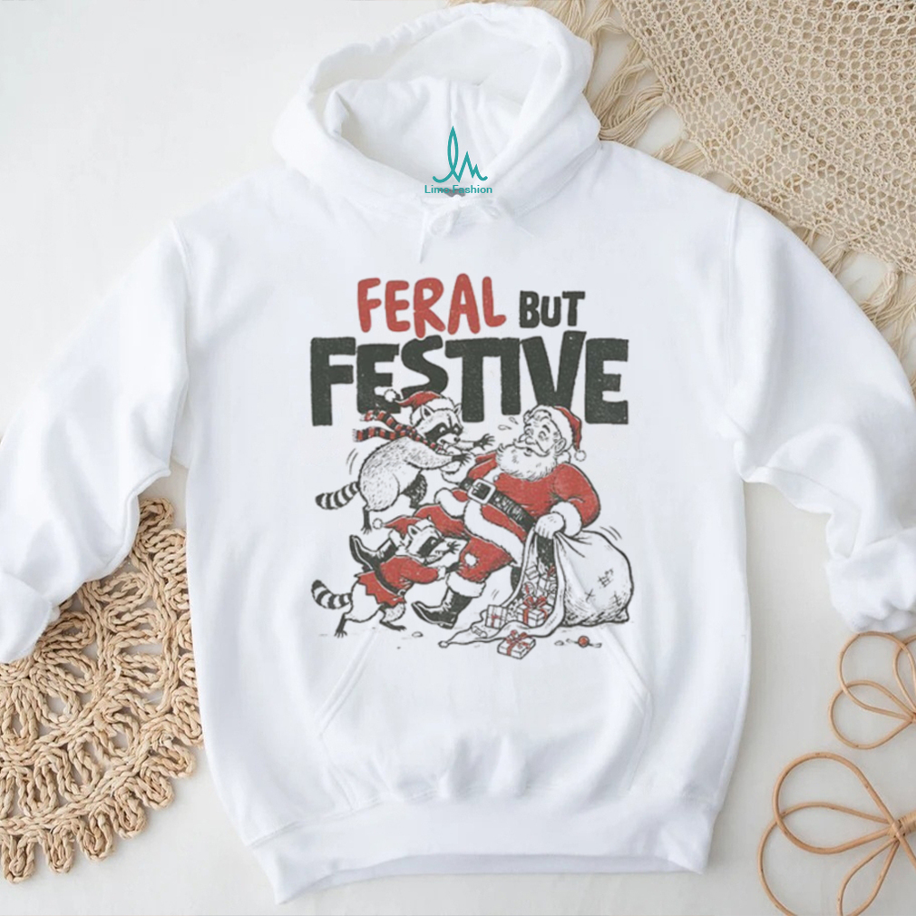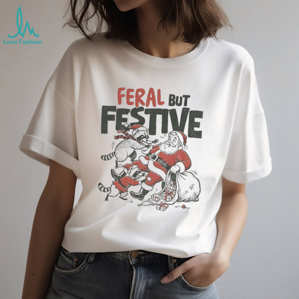 Funny Christmas raccoon vs Santa Feral but festive shirt