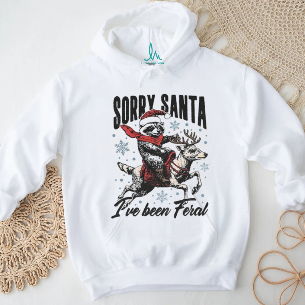 • This item: Funny Raccoon with Santa Claus hat sorry Santa I’ve been feral t shirt Original price was: $28.99.Current price is: $21.95.