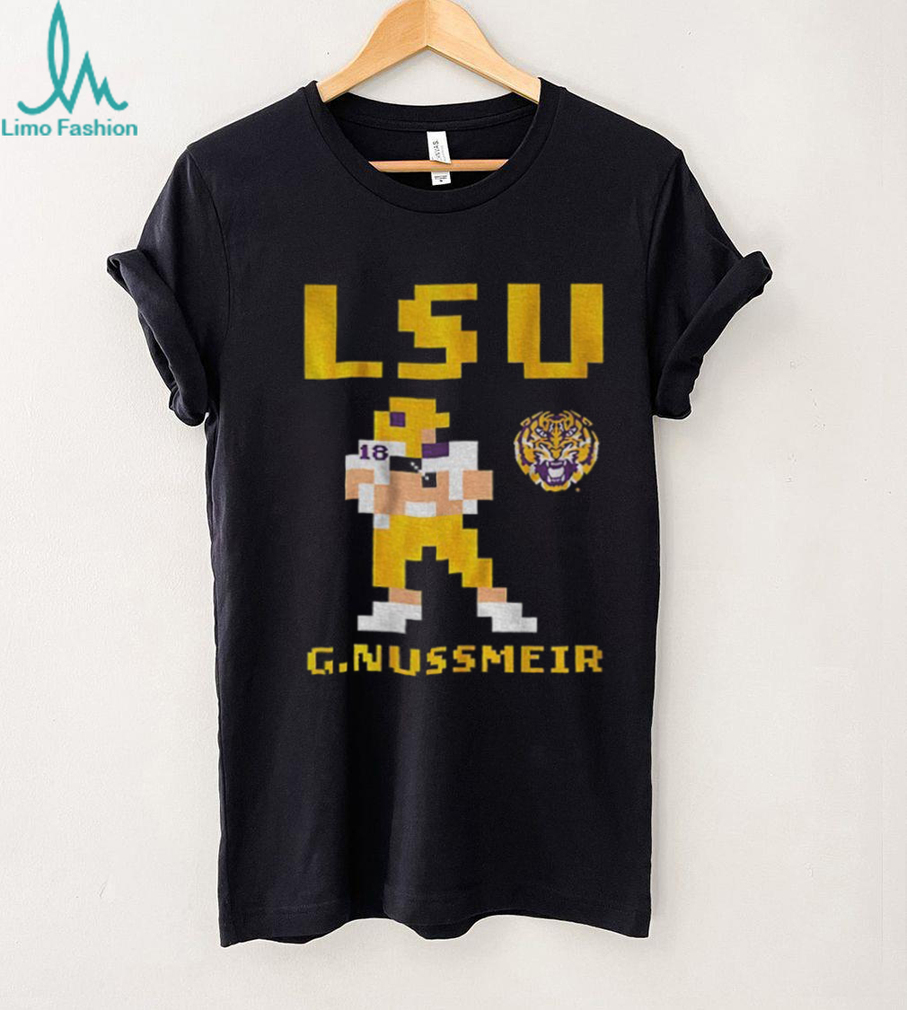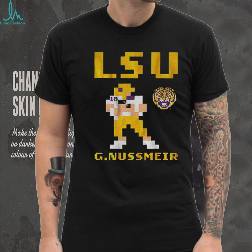 Step back in time with this vintage-inspired Garrett Nussmeier “Retro Baller” T-shirt! This tee combines classic design with modern comfort, making it the perfect way to celebrate your favorite LSU Tigers quarterback. Show your support for Nussmeier and the Tigers with this unique and stylish piece.