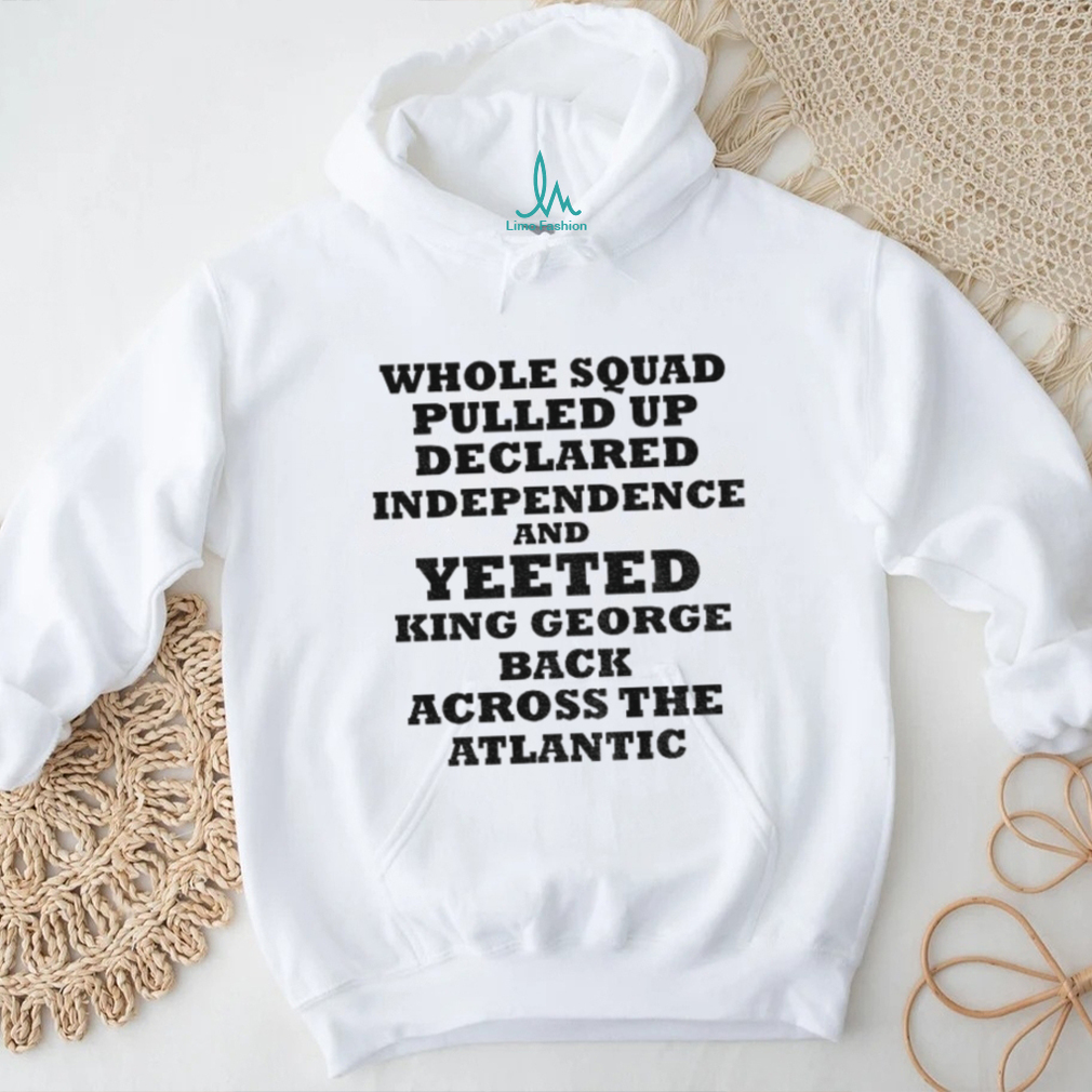 This “George Washington whole squad pulled up declared independence and yeeted king George shirt” is more than just a tee; it’s a statement. It’s for history buffs with a sense of humor, meme-loving patriots, and anyone who appreciates a good, bold design. The shirt features George Washington and his squad.