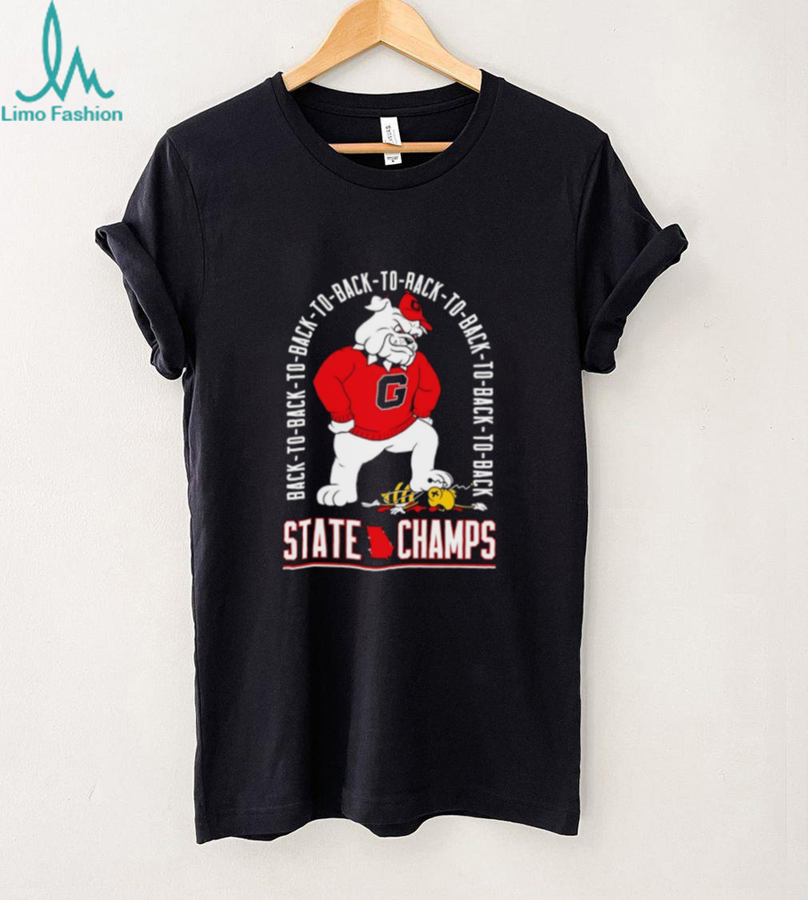 Celebrate the Georgia Bulldogs’ dominance over the Yellow Jackets with this awesome back-to-back 8-time State Champs shirt! Perfect for any Bulldogs fan, this shirt lets you show your team pride and commemorate their impressive winning streak.