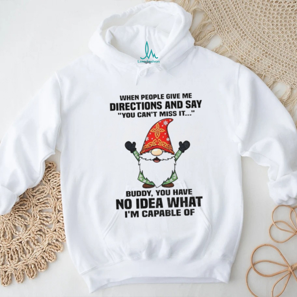 Gnome when people give me directions and say you can’t miss it buddy you have no idea Christmas shirt