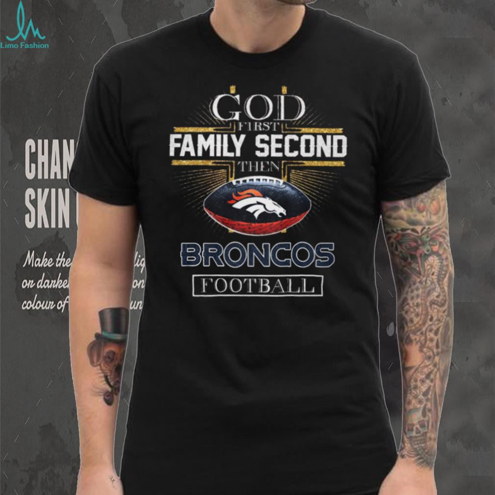 ()Others framed it less combatively and more tenderly. They talked about how a Bad Bunny Super Bowl could represent a rare moment of multicultural God First Family Second Then Denver Broncos Football T Shirt that is badly needed. They pointed to his history of blurring the expected lines of masculinity and hoped his performance would show the world that joy doesn’t have to be gendered or restrained.