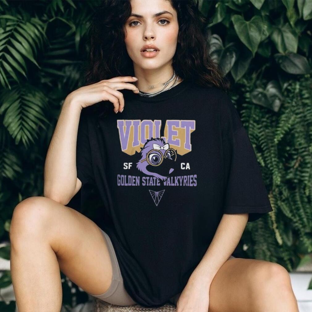 Show your support for the Golden State Valkyries with this adorable Violet Cartoon Mascot Logo T-Shirt! Perfect for WNBA game nights, casual outings, or just expressing your team pride in a fun and unique way. This tee is a must-have for any true Valkyries fan who loves a touch of whimsy. Grab yours now and cheer on your favorite team!