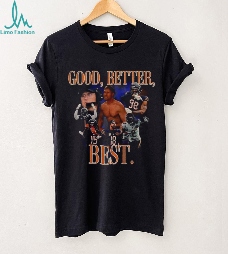 This Good Better Best Chicago Bears shirt features a design that subtly nods to the team’s relentless pursuit of victory, reflecting the journey from good plays to unforgettable wins. Crafted from a soft, breathable cotton blend, it ensures maximum comfort whether you’re cheering from the stands or enjoying a relaxed weekend. The vintage-style graphic is printed to last, maintaining its appeal through countless wears and washes. With a relaxed fit and available in various sizes, it’s designed to be your go-to tee. See the first image for a closer look at this unique design.